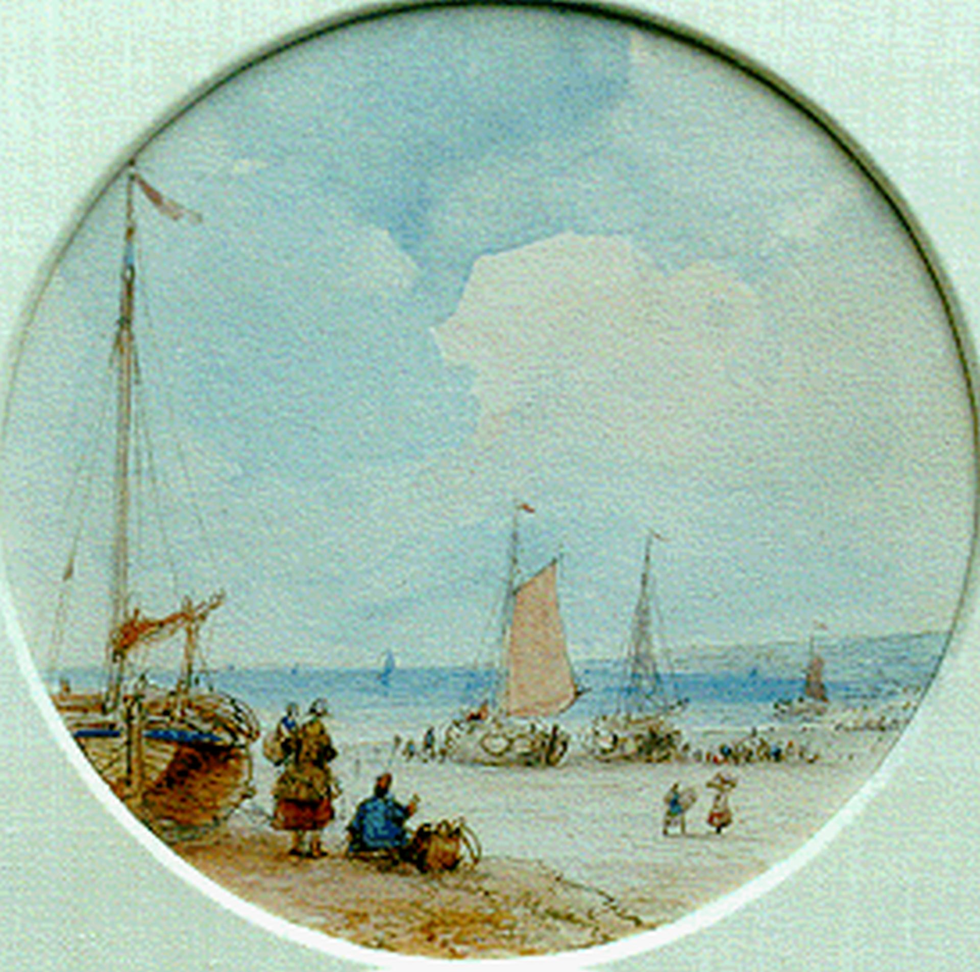Andreas Schelfhout kunstwerk • aquarel • tekening • voorheen te koop Aankomst van de vloot