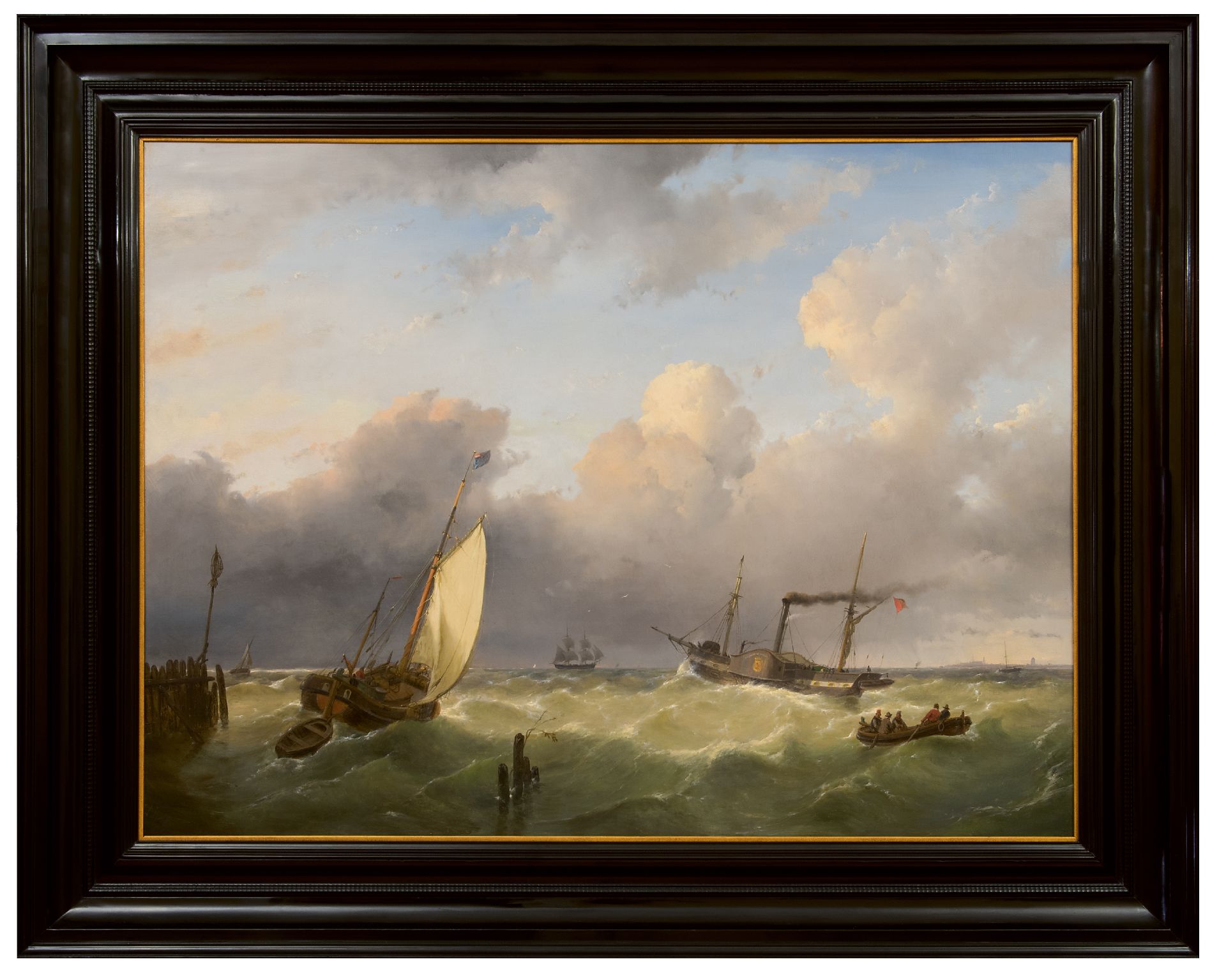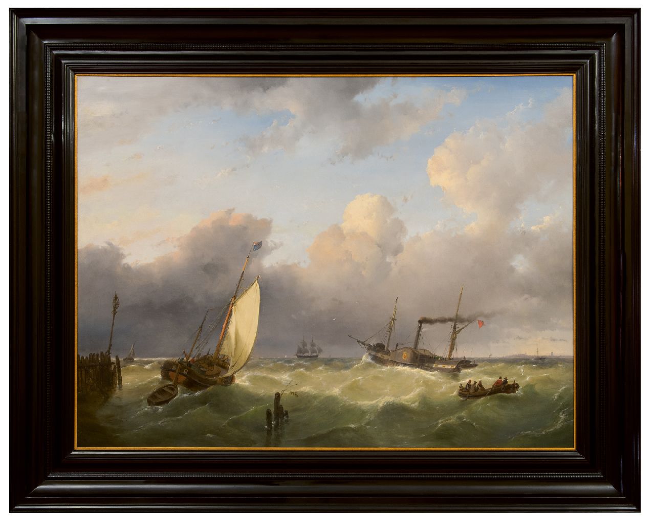 Andreas Schelfhout kunstwerk • schilderij • te koop Een smak en een raderstoomboot op zee