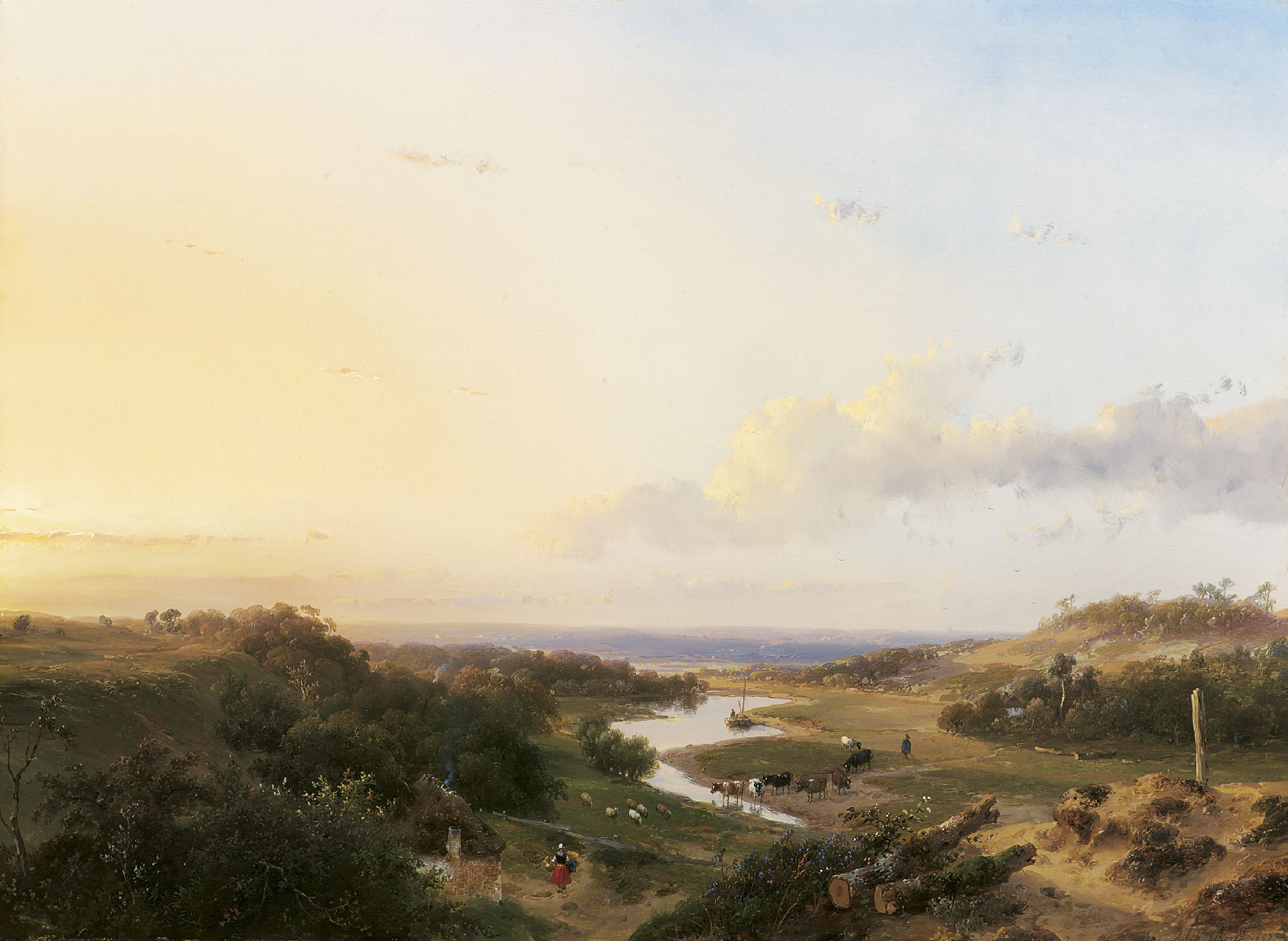 Andreas Schelfhout kunstwerk • schilderij • voorheen te koop Herder met kudde in een riviervallei (tezamen met 7655)
