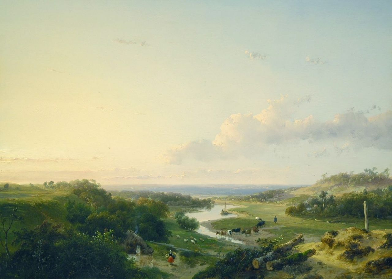 Andreas Schelfhout kunstwerk • schilderij • voorheen te koop Herder met kudde in een riviervallei (tezamen met 7655)