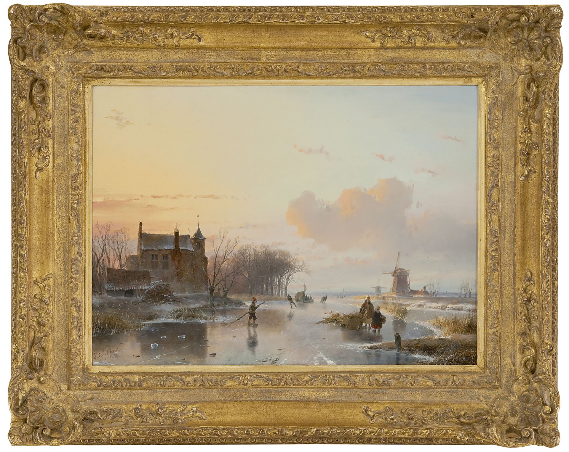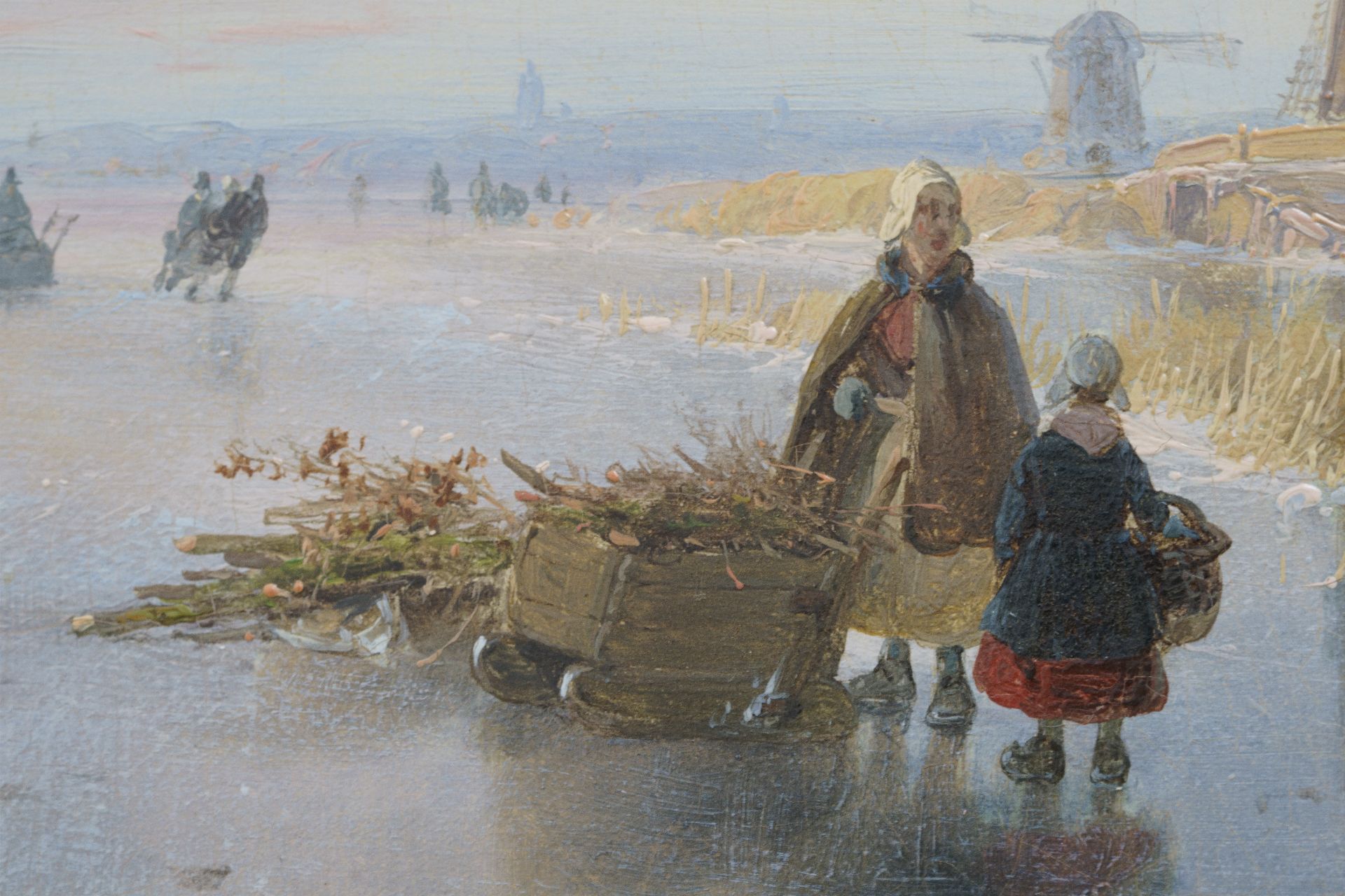 Andreas Schelfhout kunstwerk • schilderij • voorheen te koop IJsgezicht met houtsprokkelaars