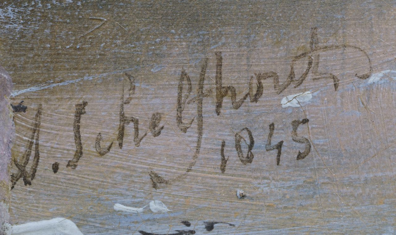 olieverf op paneel 38,5 x 49,8 cm, gesigneerd linksonder en gedateerd 1845