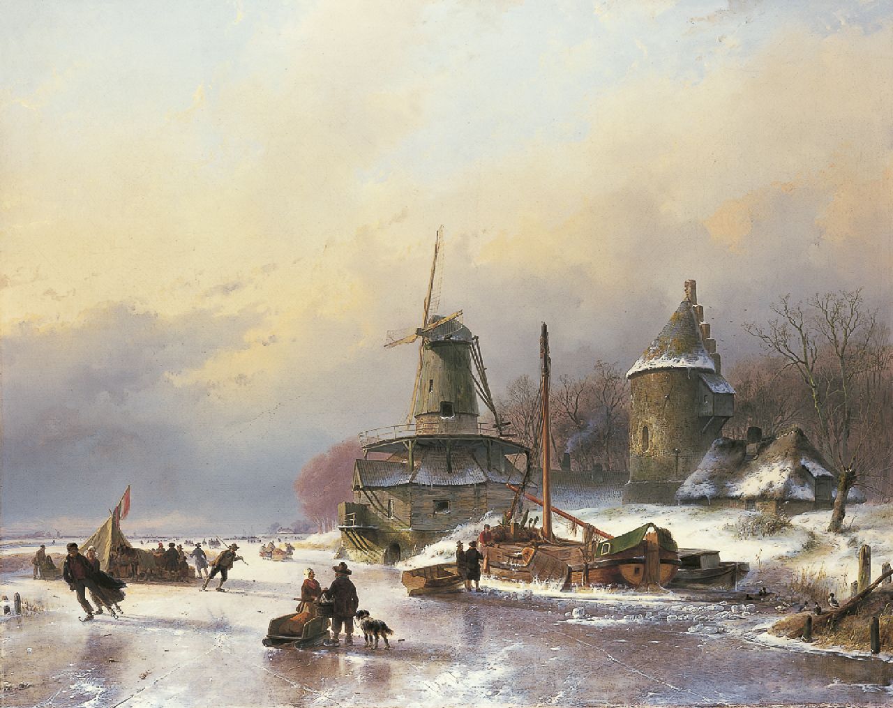 Andreas Schelfhout kunstwerk • schilderij • voorheen te koop IJsvertier aan de voet van een molen