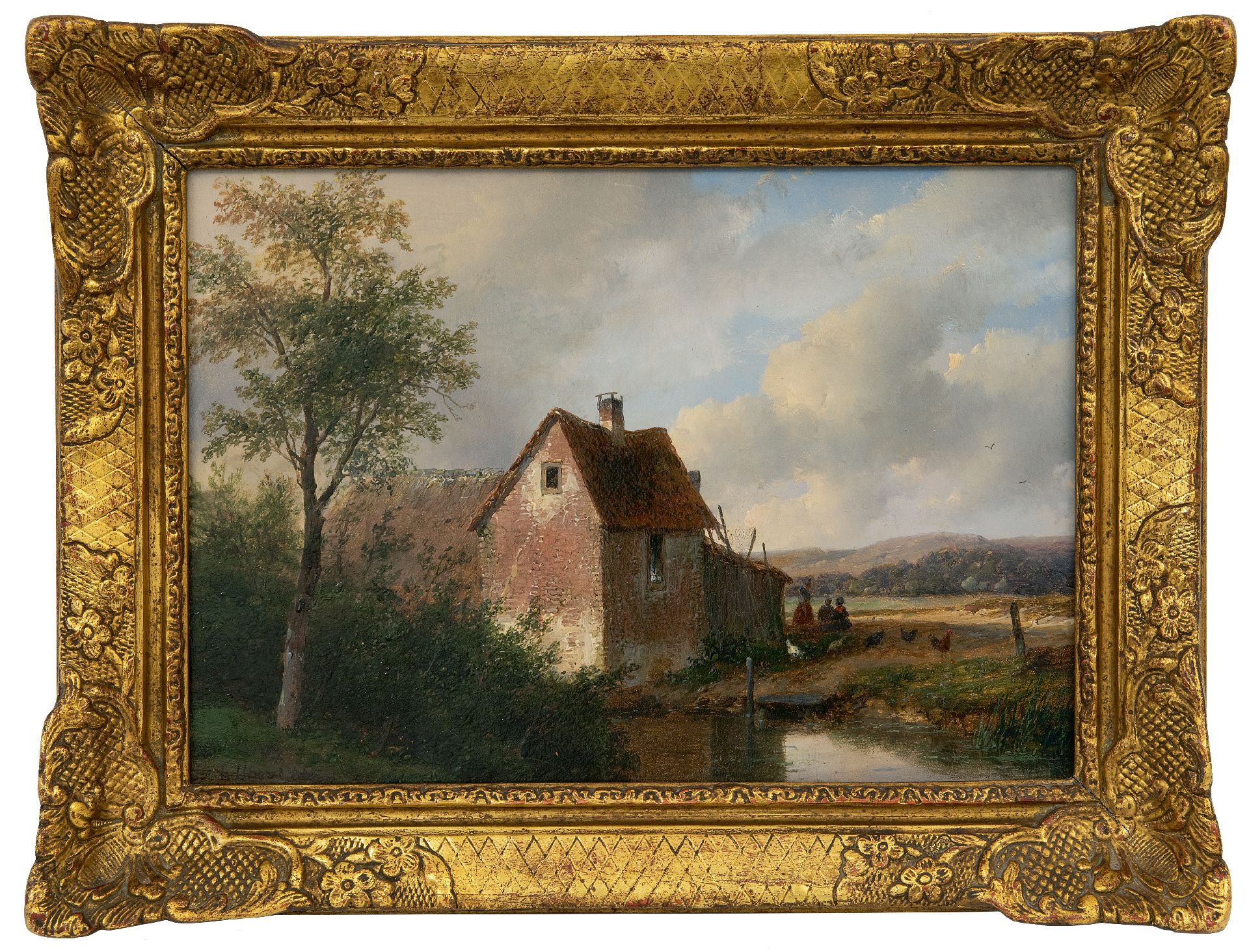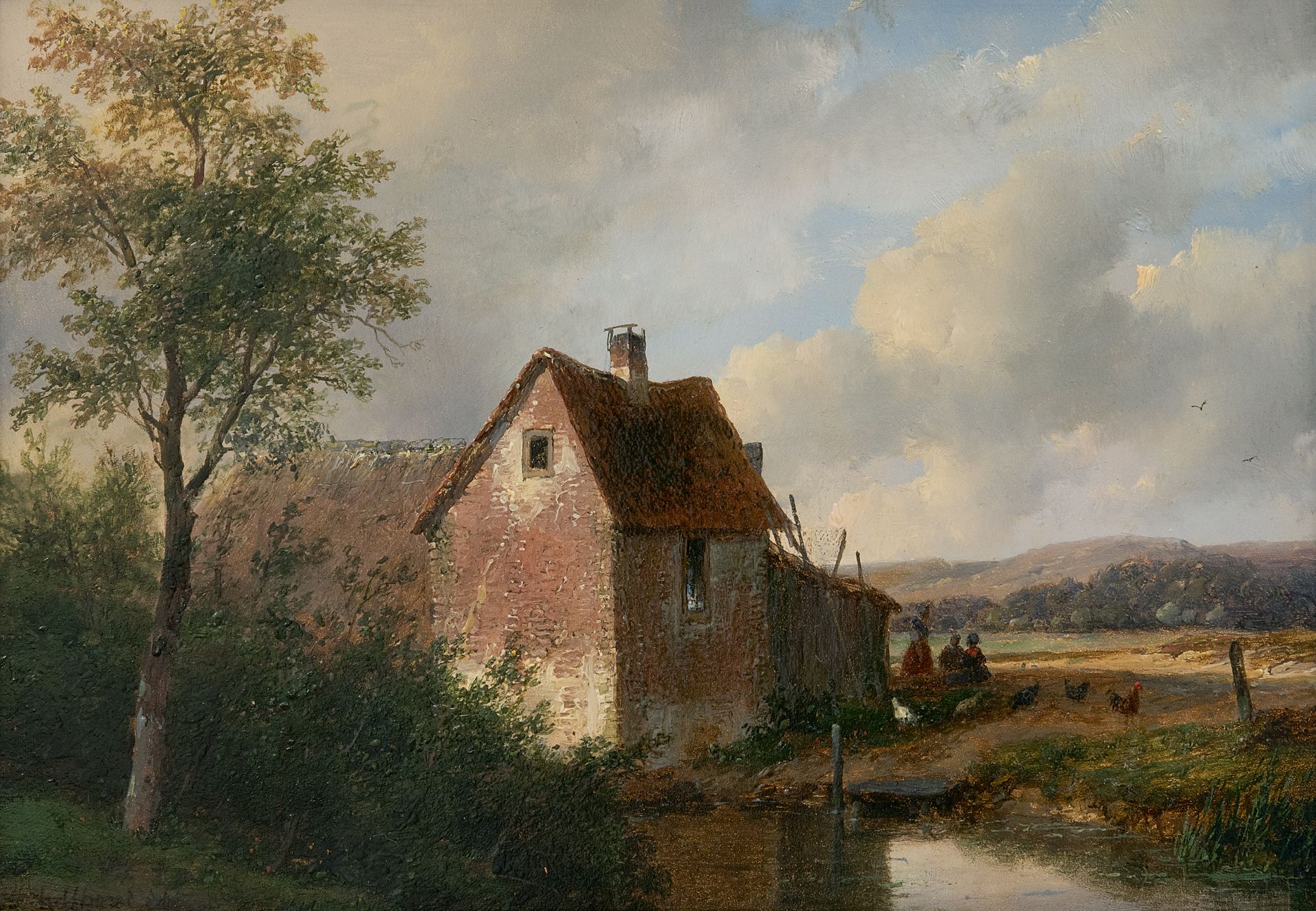 Andreas Schelfhout kunstwerk • schilderij • voorheen te koop Landschap met boerderij
