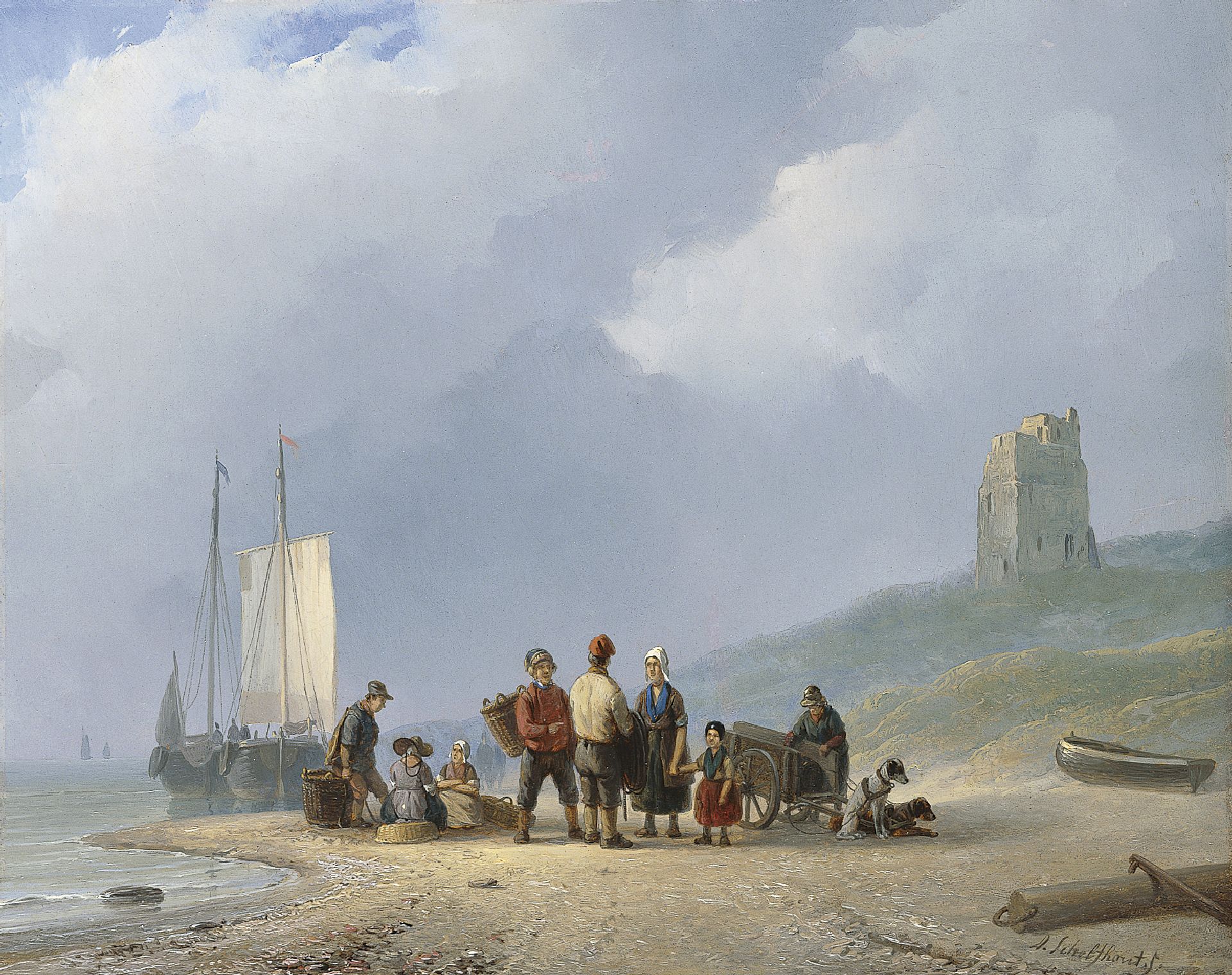 In de 19e eeuw was Andreas Schelfhout een van de eerste schilders die zich richtte op het Hollandse zee- en strandgezicht, daarmee bijdragend aan een herwaardering van dit genre in zijn tijd. Vanaf 1824 schilderde hij regelmatig voorstellingen van het Scheveningse strand, met vissers, en later ook met flaneurs. Zijn belangstelling voor het strandgezicht werd gewekt door 17e-eeuwse marines in de Haagse koninklijke collecties en werken van Franse, Duitse en Engelse eigentijdse schilders. Schelfhout heeft met zijn ‘strandjes’ een belangrijke rol gespeeld bij de transformatie en het aanzien van dit genre. Daardoor heeft hij grote invloed gehad op latere kunstenaars, met name op schilders van de Haagse School.