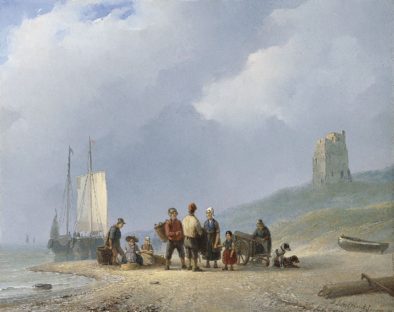 Andreas Schelfhout kunstwerk • schilderij • voorheen te koop Na de visvangst