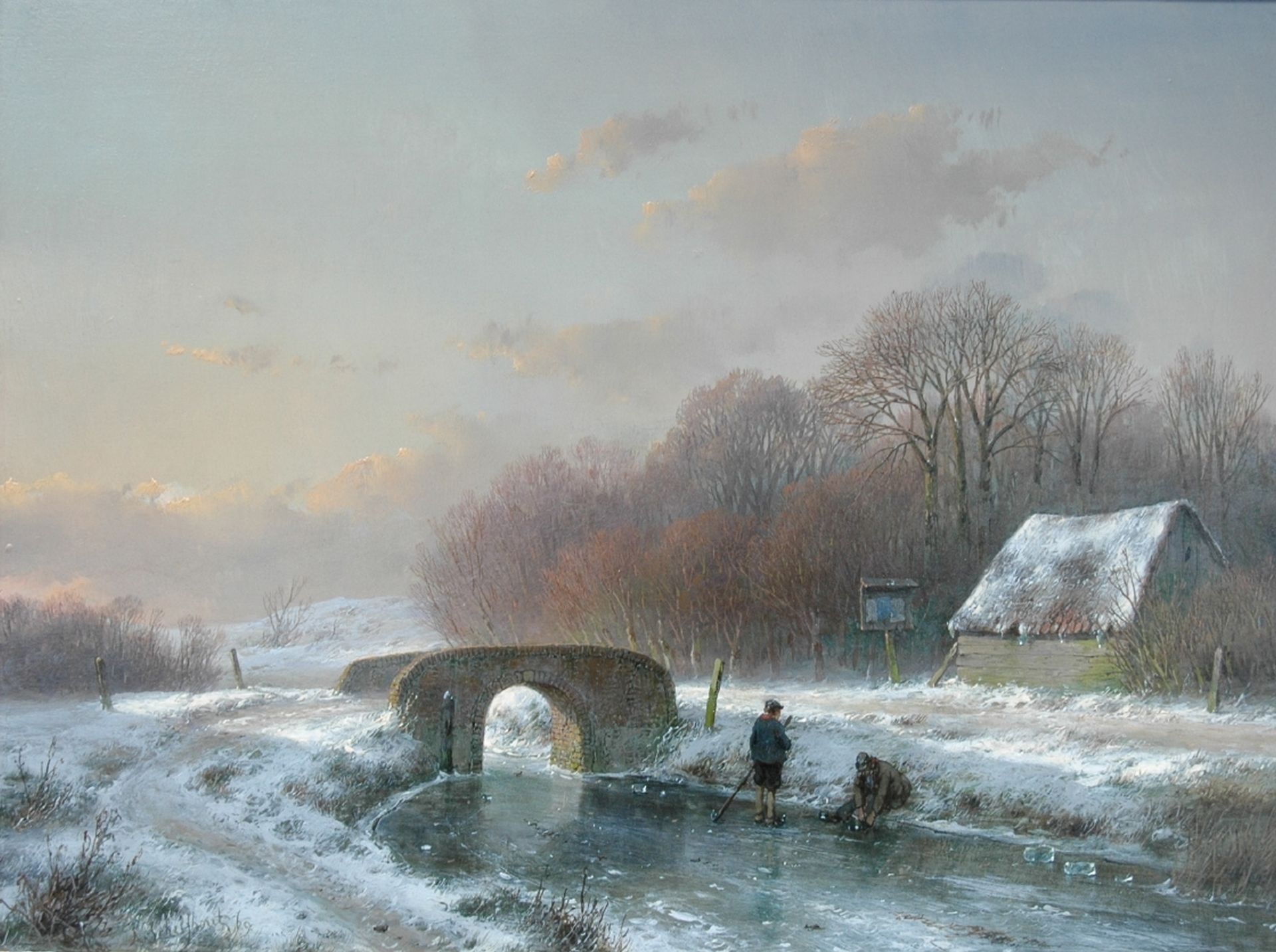 Andreas Schelfhout kunstwerk • schilderij • voorheen te koop Op de schaats in de namiddag