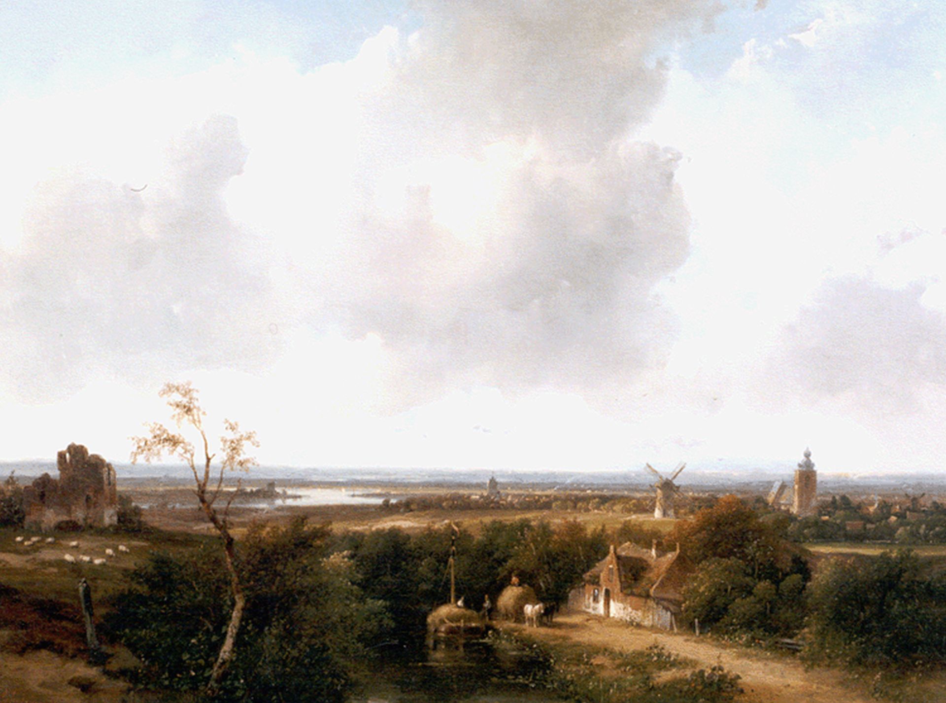 Andreas Schelfhout kunstwerk • schilderij • voorheen te koop Panoramisch zomerlandschap met ruine van Brederode