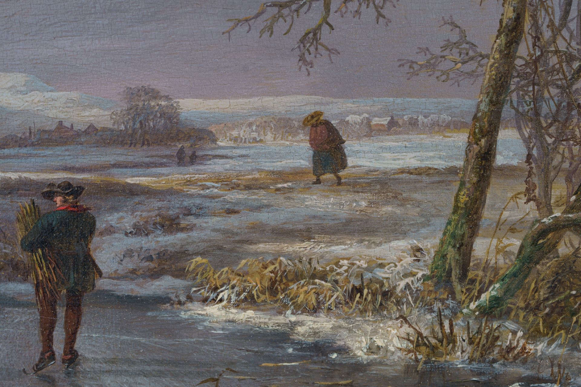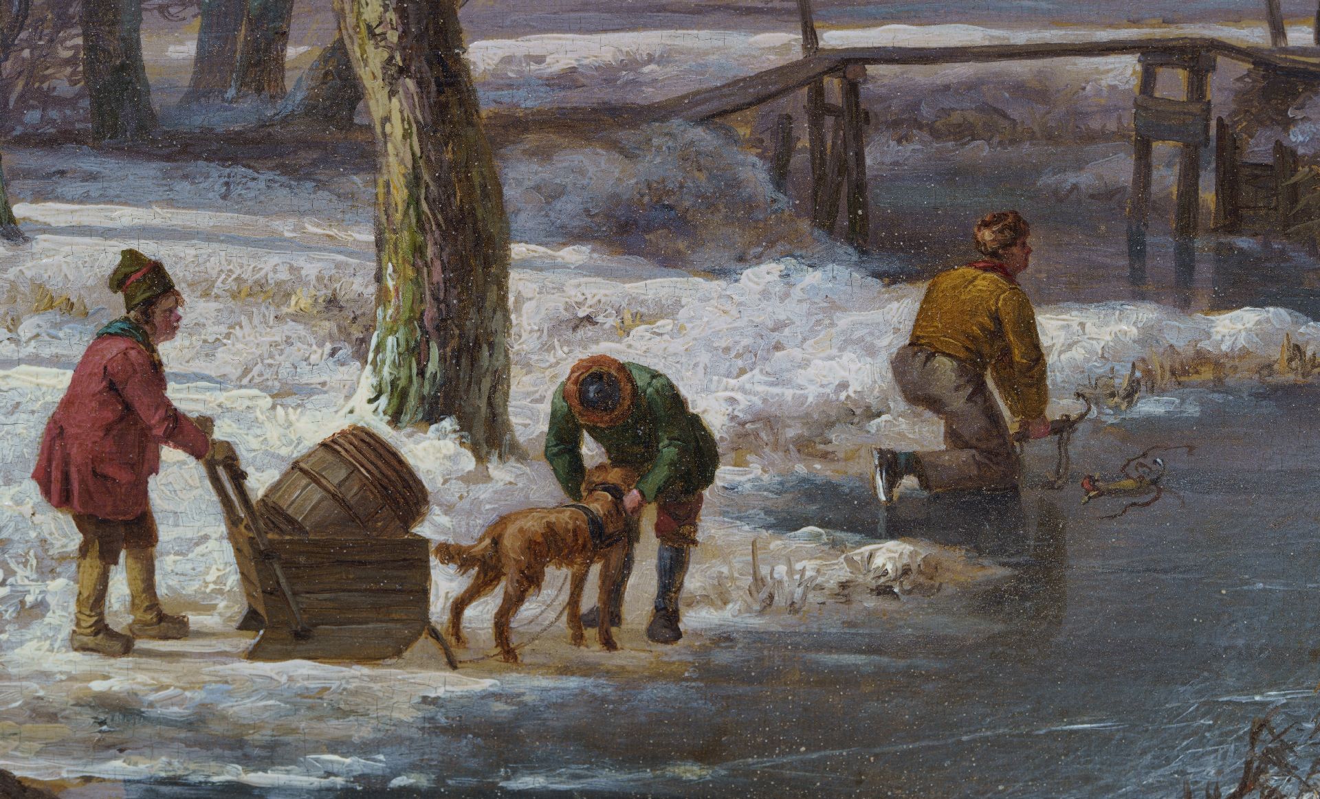 Sneeuwlandschap met figuren op een bevroren sloot