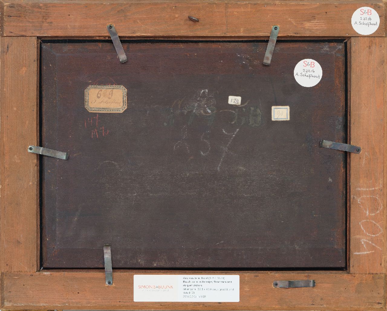 Schelfhout werkte vaak langs de Scheveningse kust en een van de eerste schilders in de 19e eeuw die zich richtte op het Hollandse strandgezicht. Hier introcuceert hij een nieuwigheidje, elegante wandelaars die zich op het strand mengen tussen de visverkopers. Rond die tijd diende zich voorzichtig het recreatieve verpozen in de buitenlucht aan. Schelfhout hield van dit soort contrasten. Het strandgezicht schilderde hij in kleine anekdotes, met groot technisch raffinement uitgewerkt.