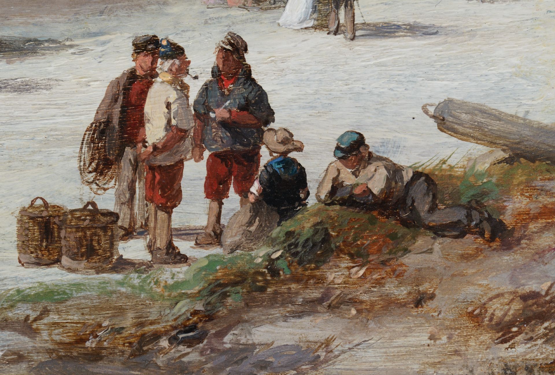 Andreas Schelfhout kunstwerk • schilderij • voorheen te koop Strandgezicht met schepen, vissers en elegante wandelaars