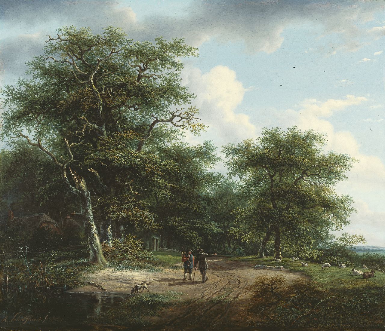 Andreas Schelfhout kunstwerk • schilderij • voorheen te koop Twee figuren in een zomers landschap