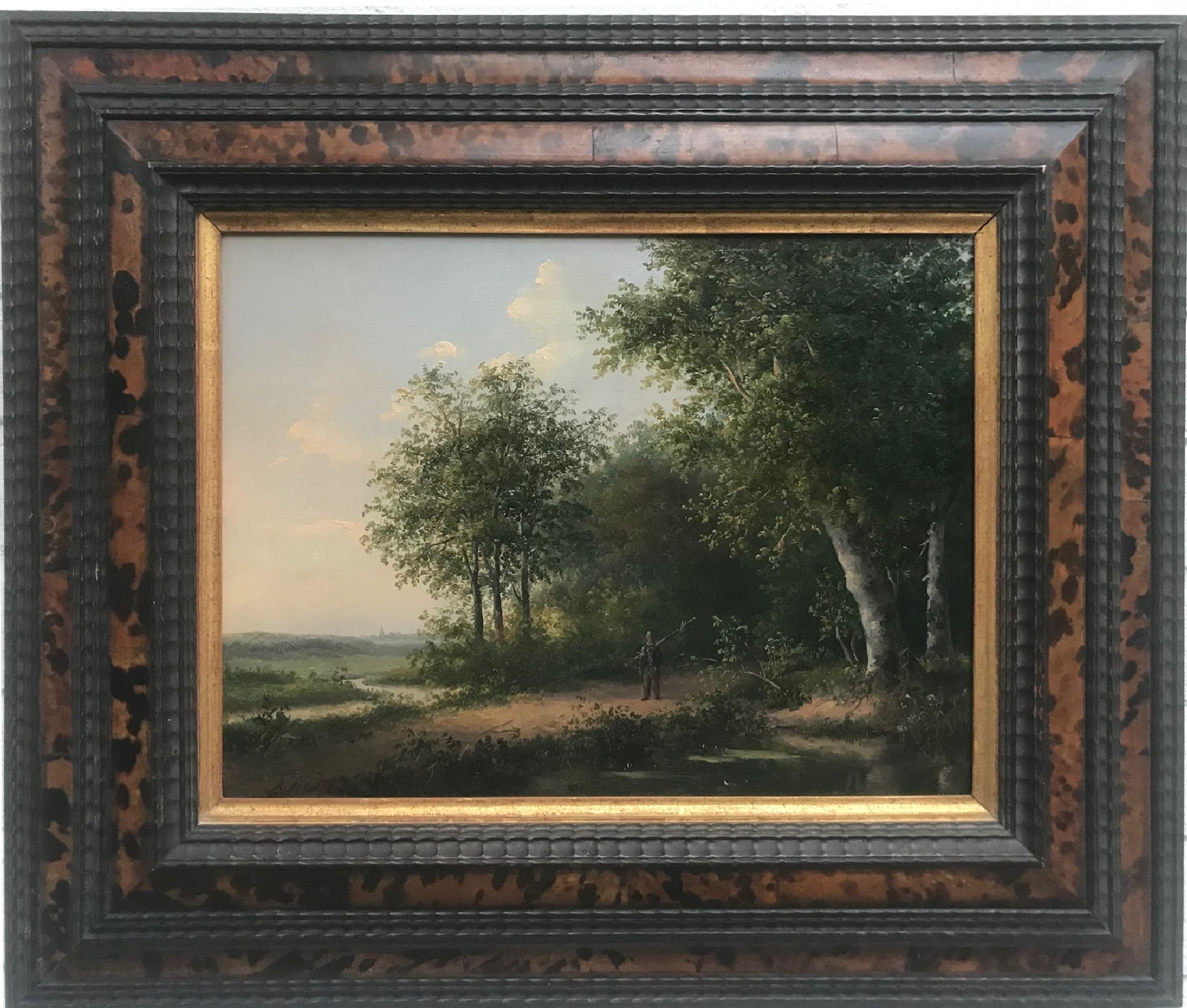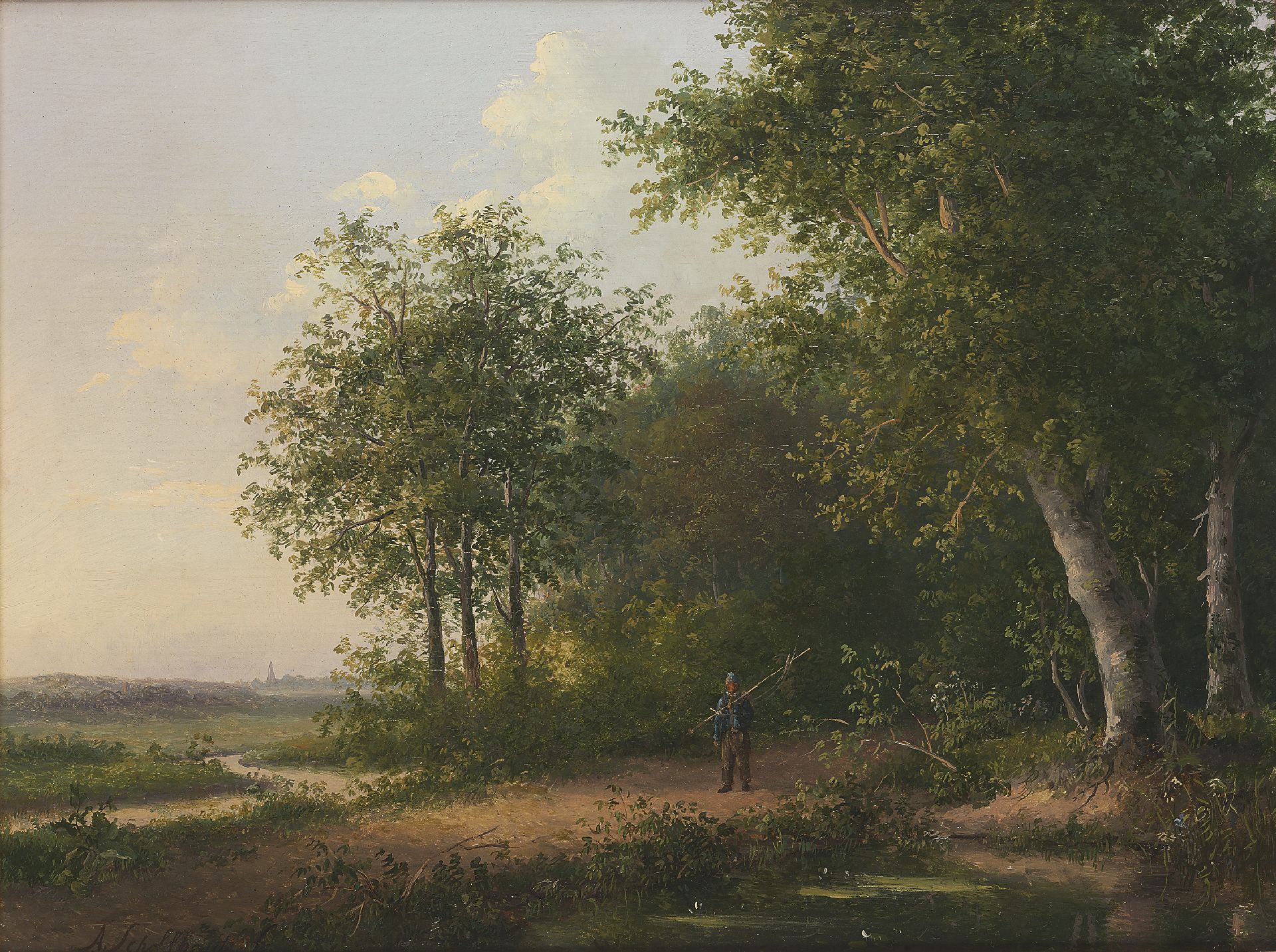 Andreas Schelfhout kunstwerk • schilderij • voorheen te koop Visser bij een bosven