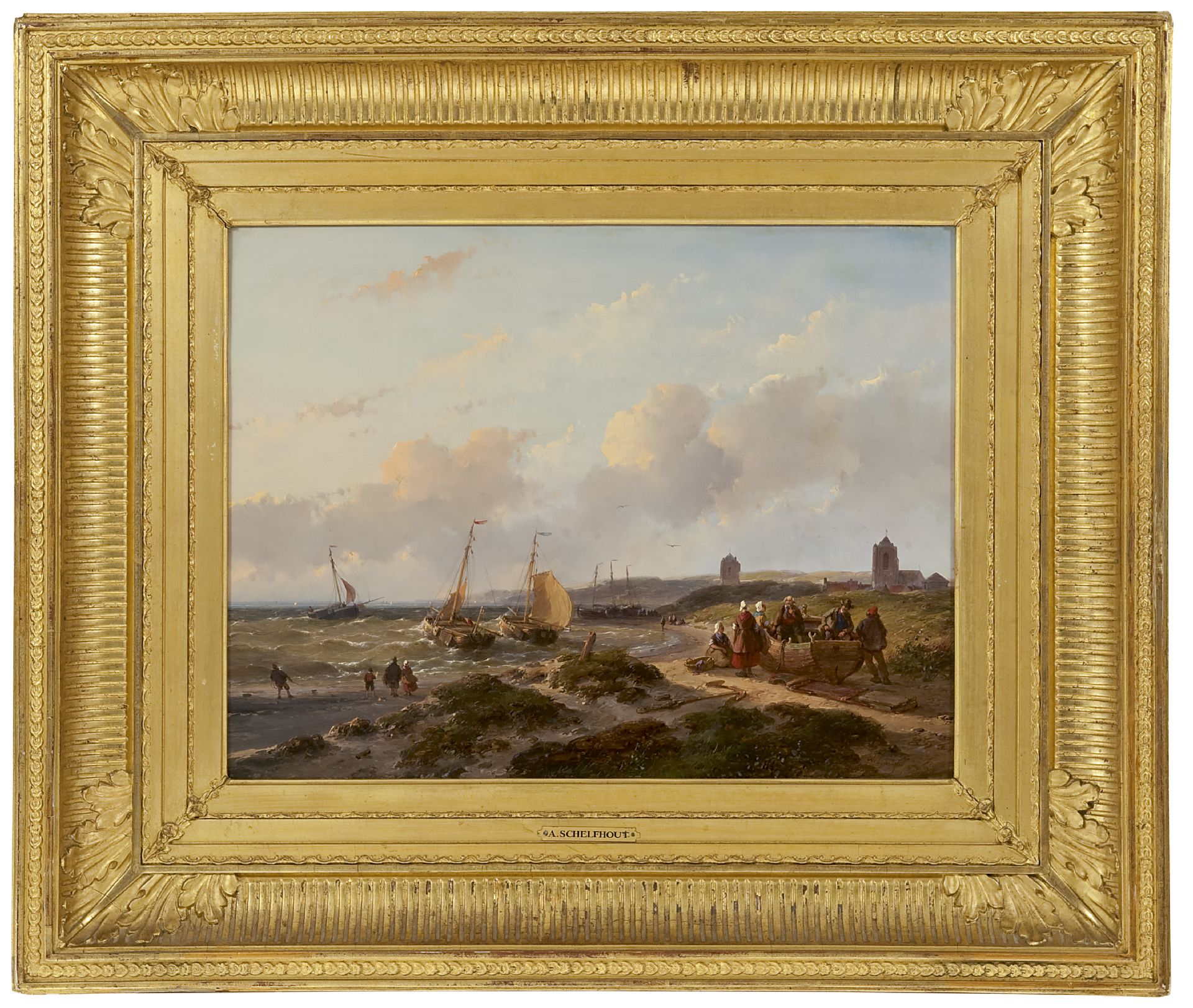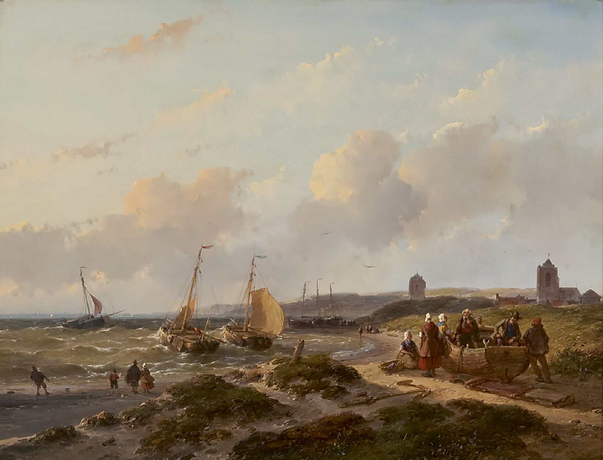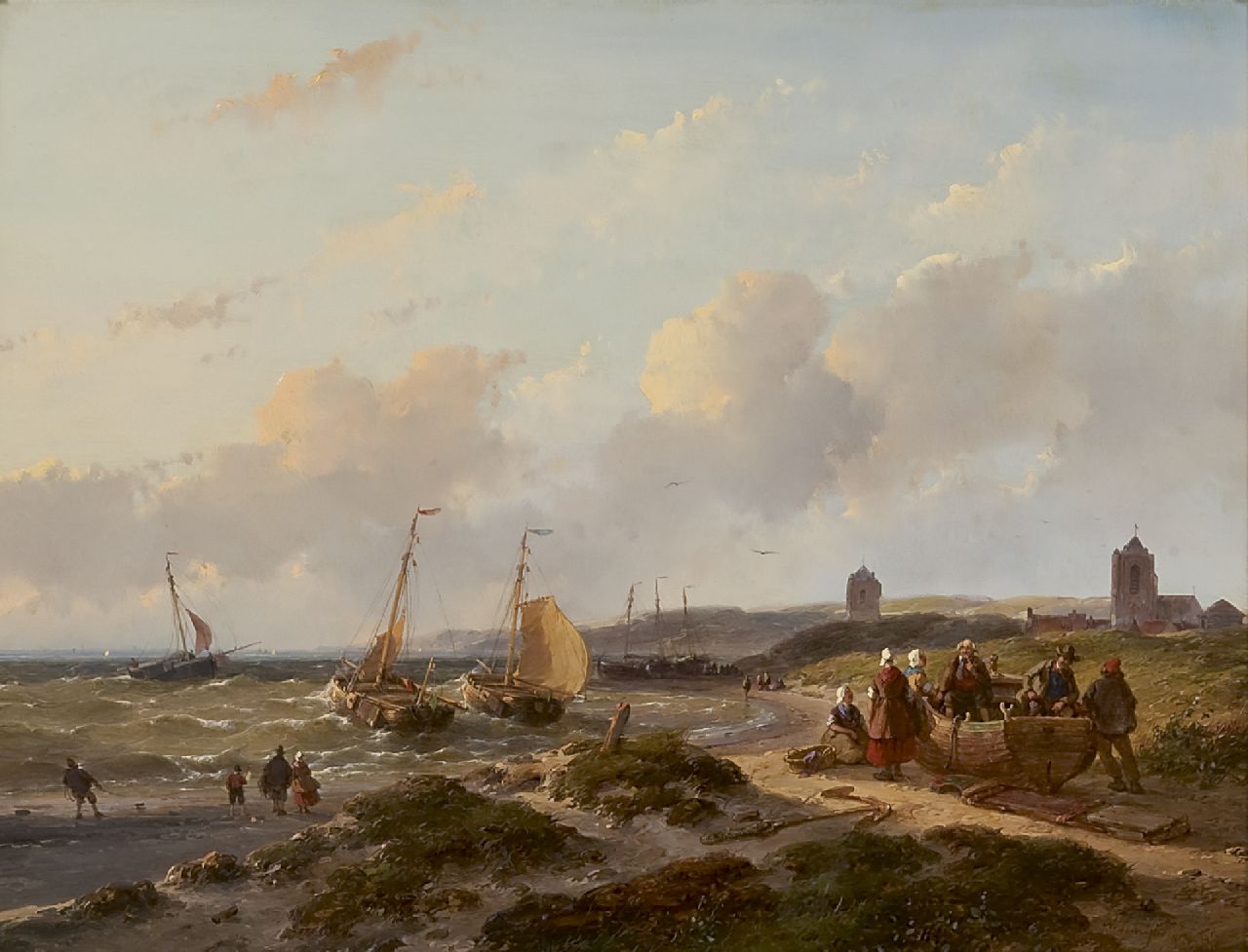 Andreas Schelfhout kunstwerk • schilderij • voorheen te koop Vissersschepen voor de kust van Katwijk