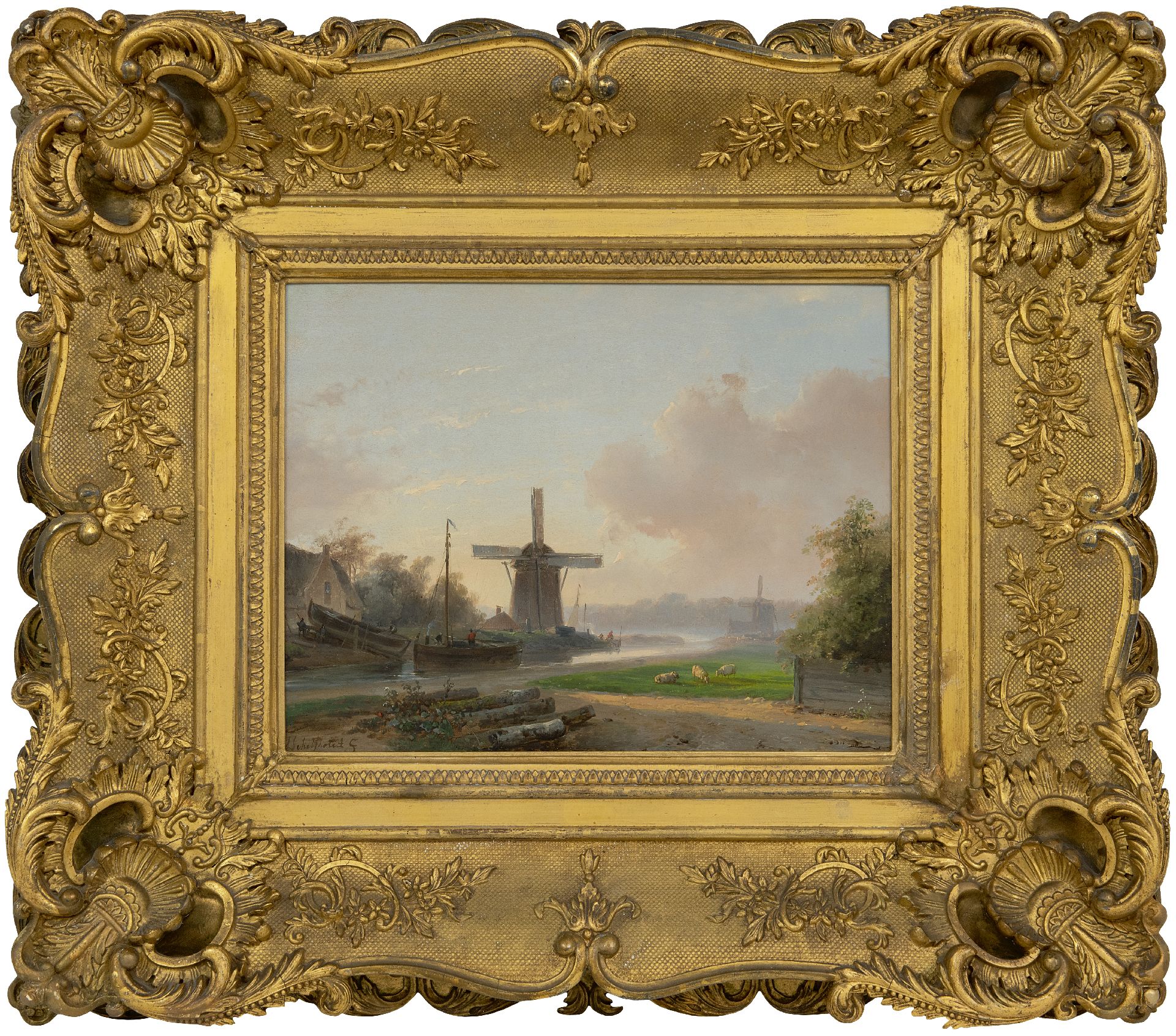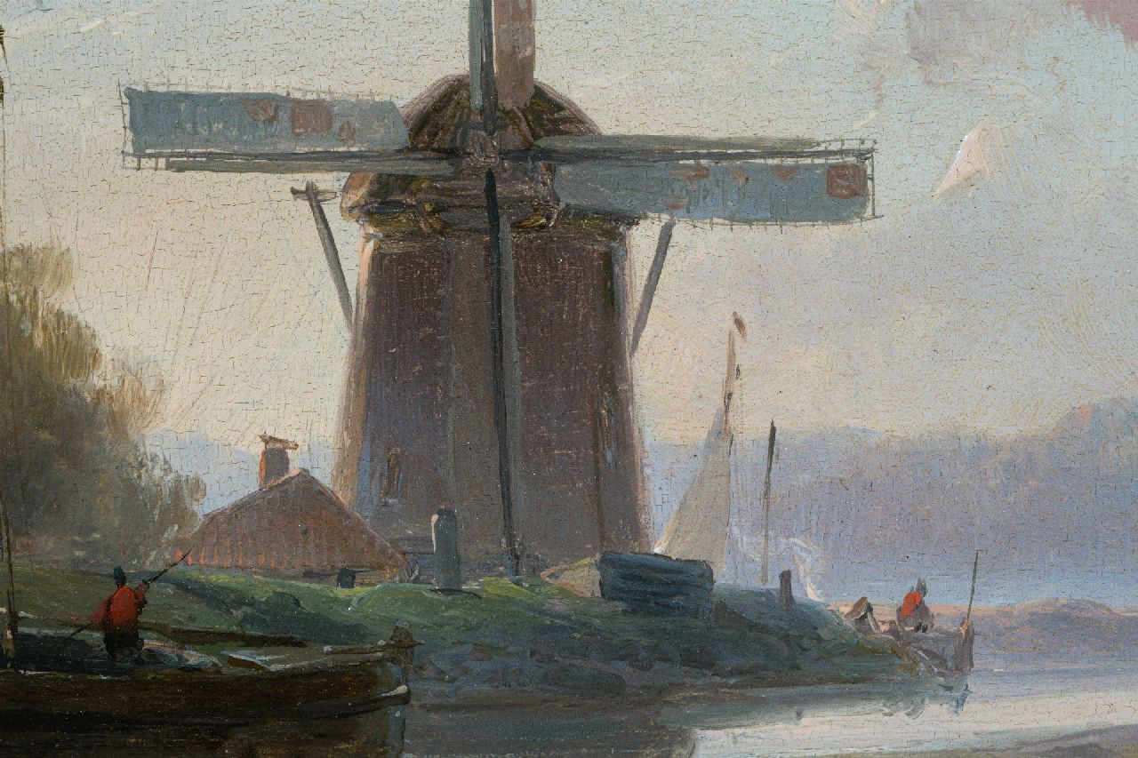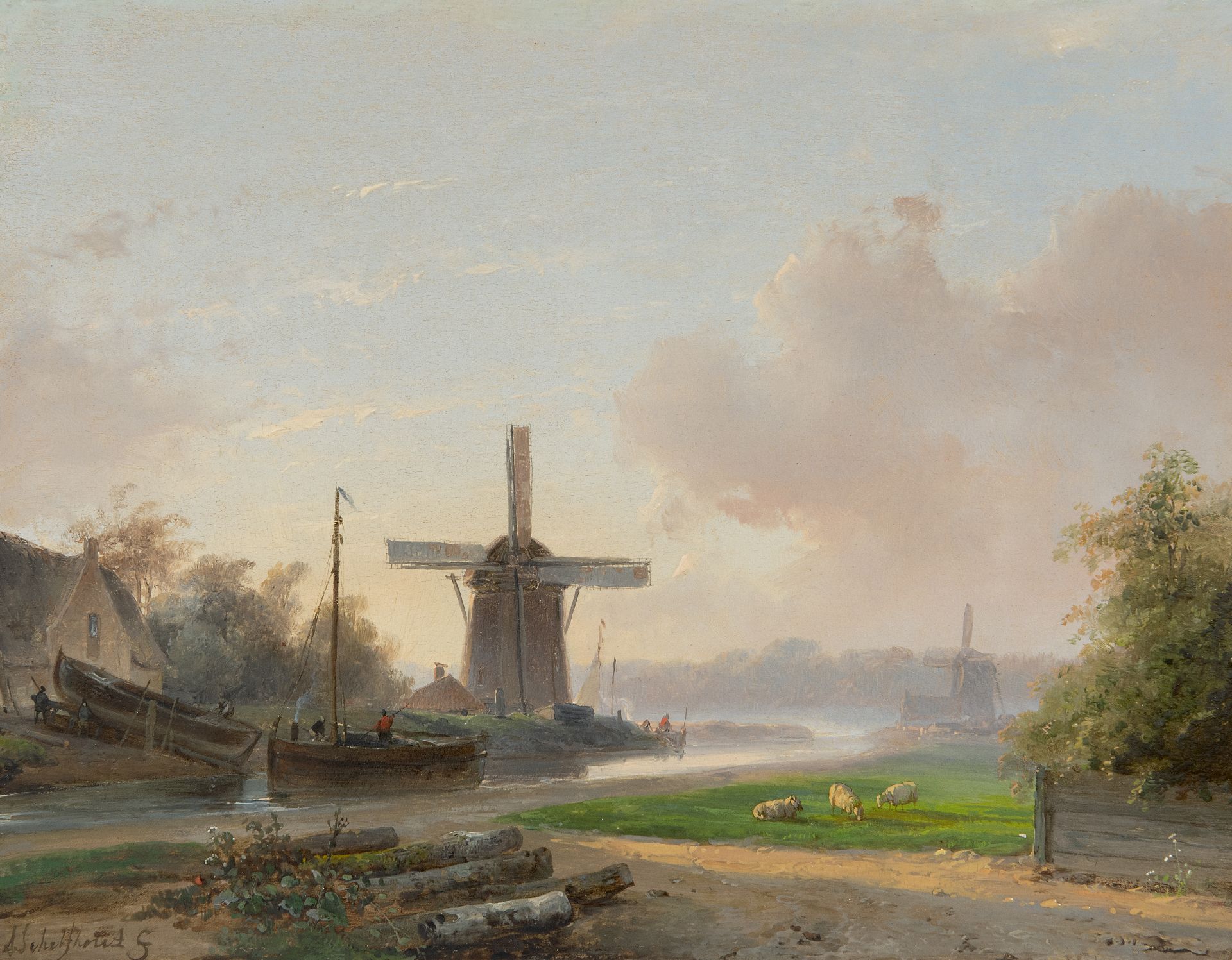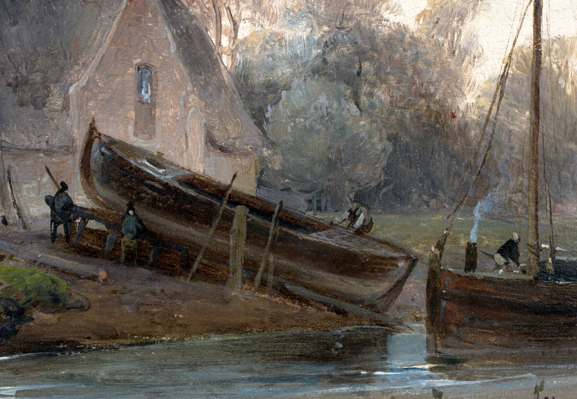 Andreas Schelfhout kunstwerk • schilderij • voorheen te koop Vroege ochtend bij een scheepswerfje (alleen tezamen met pendant winter)