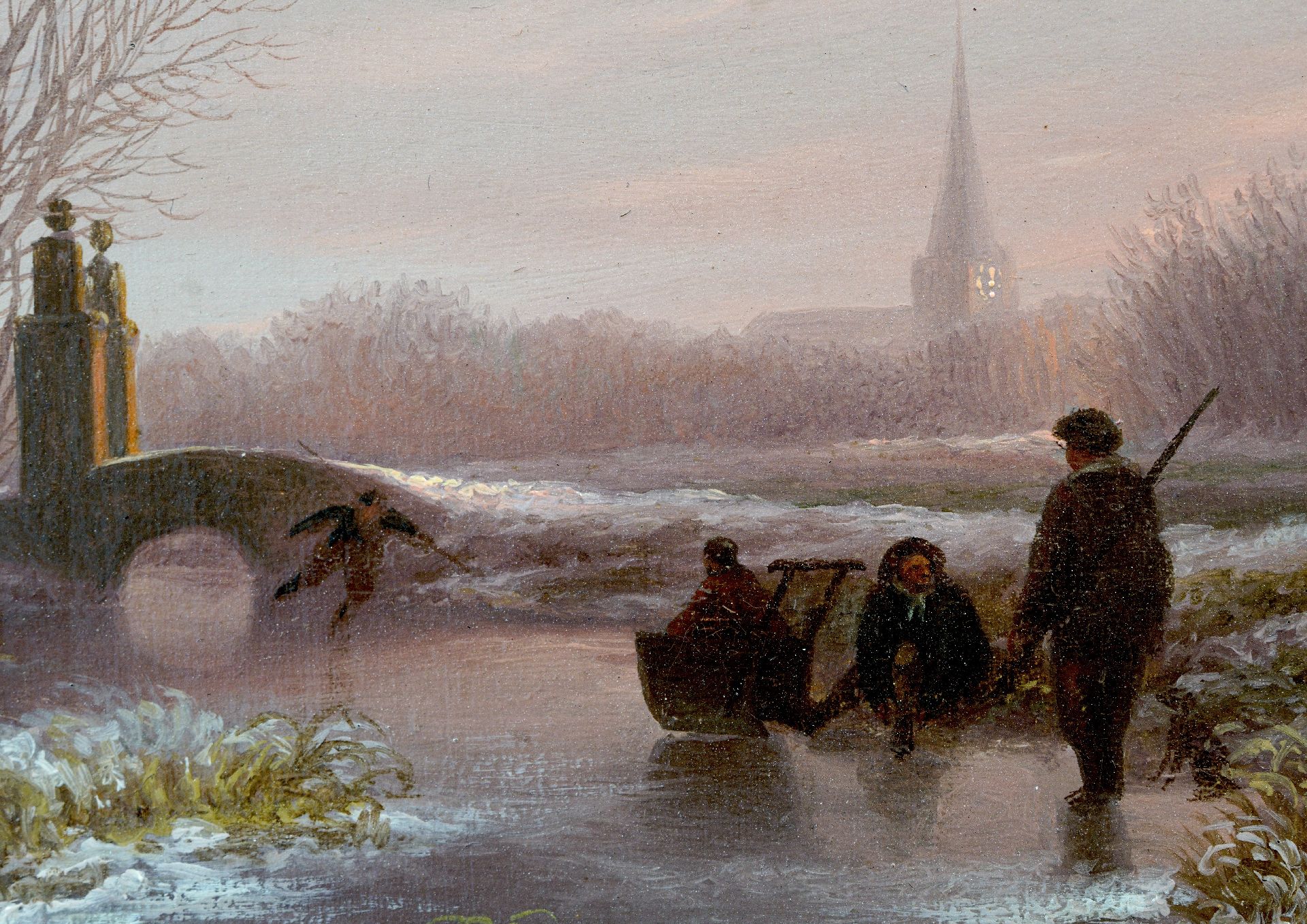 Andreas Schelfhout kunstwerk • schilderij • te koop Winterlandschap met figuren op het ijs