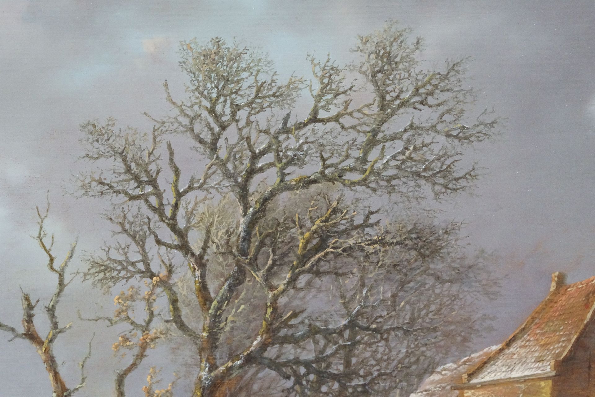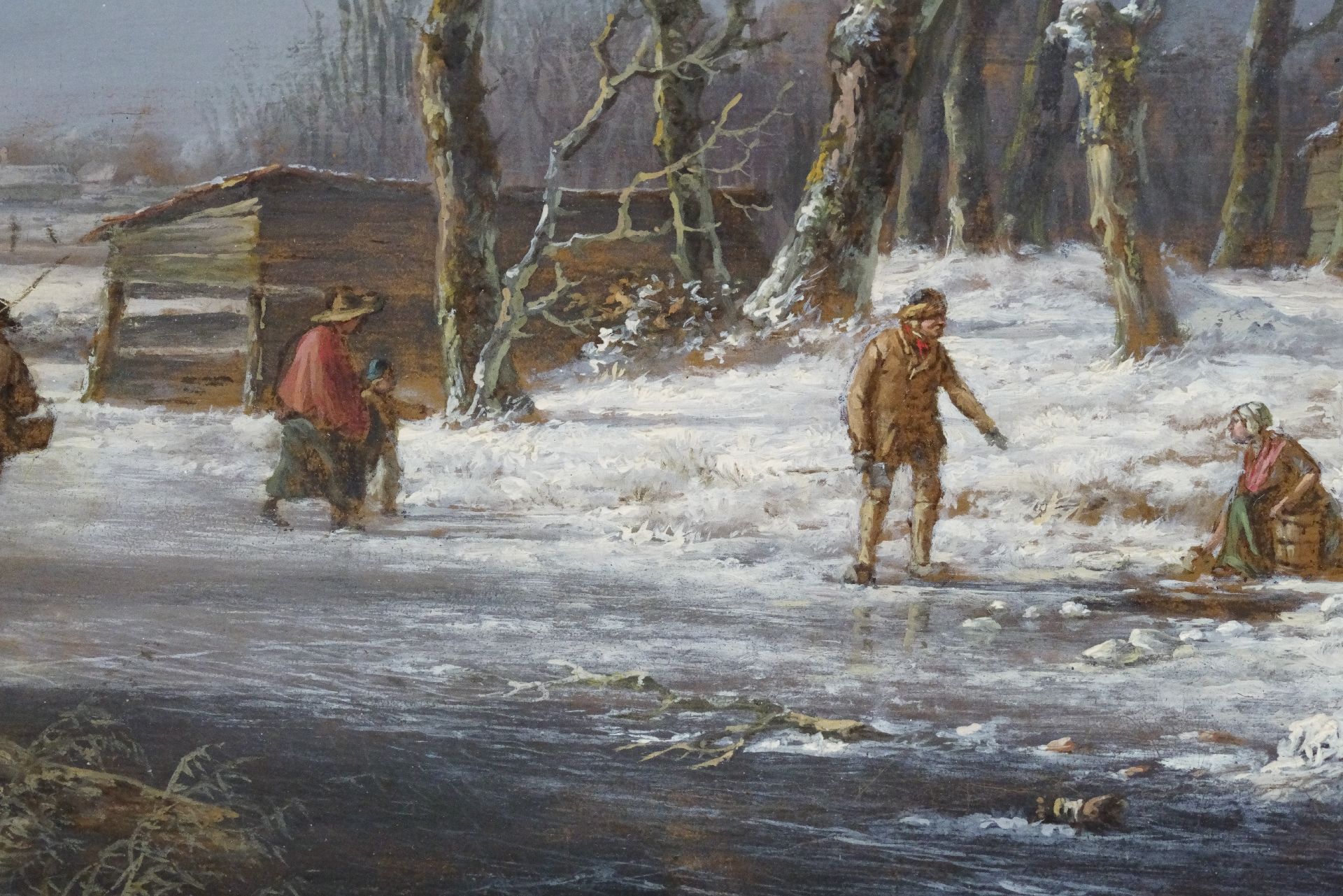 Andreas Schelfhout kunstwerk • schilderij • voorheen te koop Winterlandschap met schaatsers en een wasvrouw bij een ijsgat