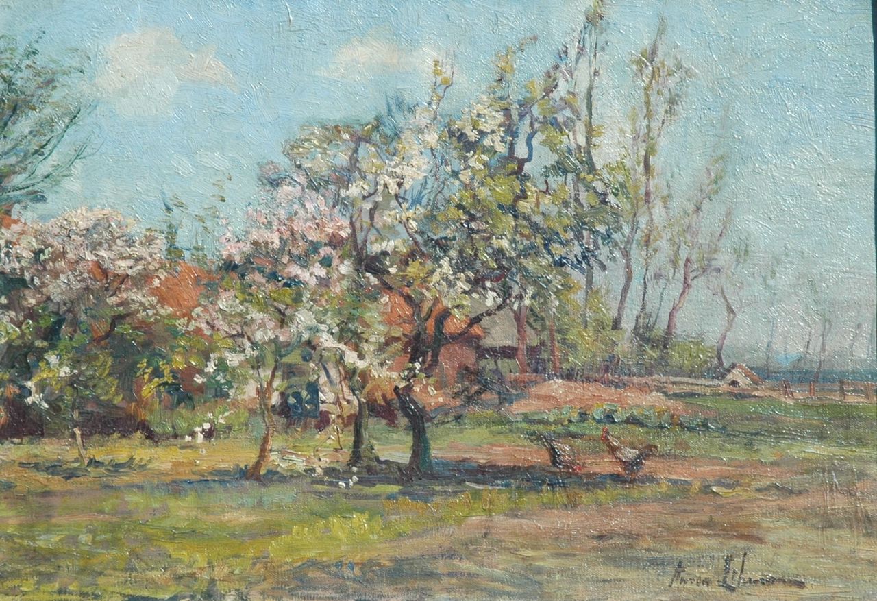 Anna Lehmann kunstwerk • schilderij • voorheen te koop Bloeiende fruitbomen in Rouge Cloître, België