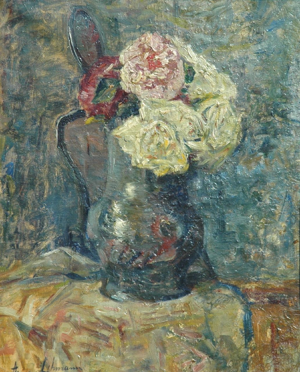 Anna Lehmann kunstwerk • schilderij • voorheen te koop Rozen in tinnen vaas