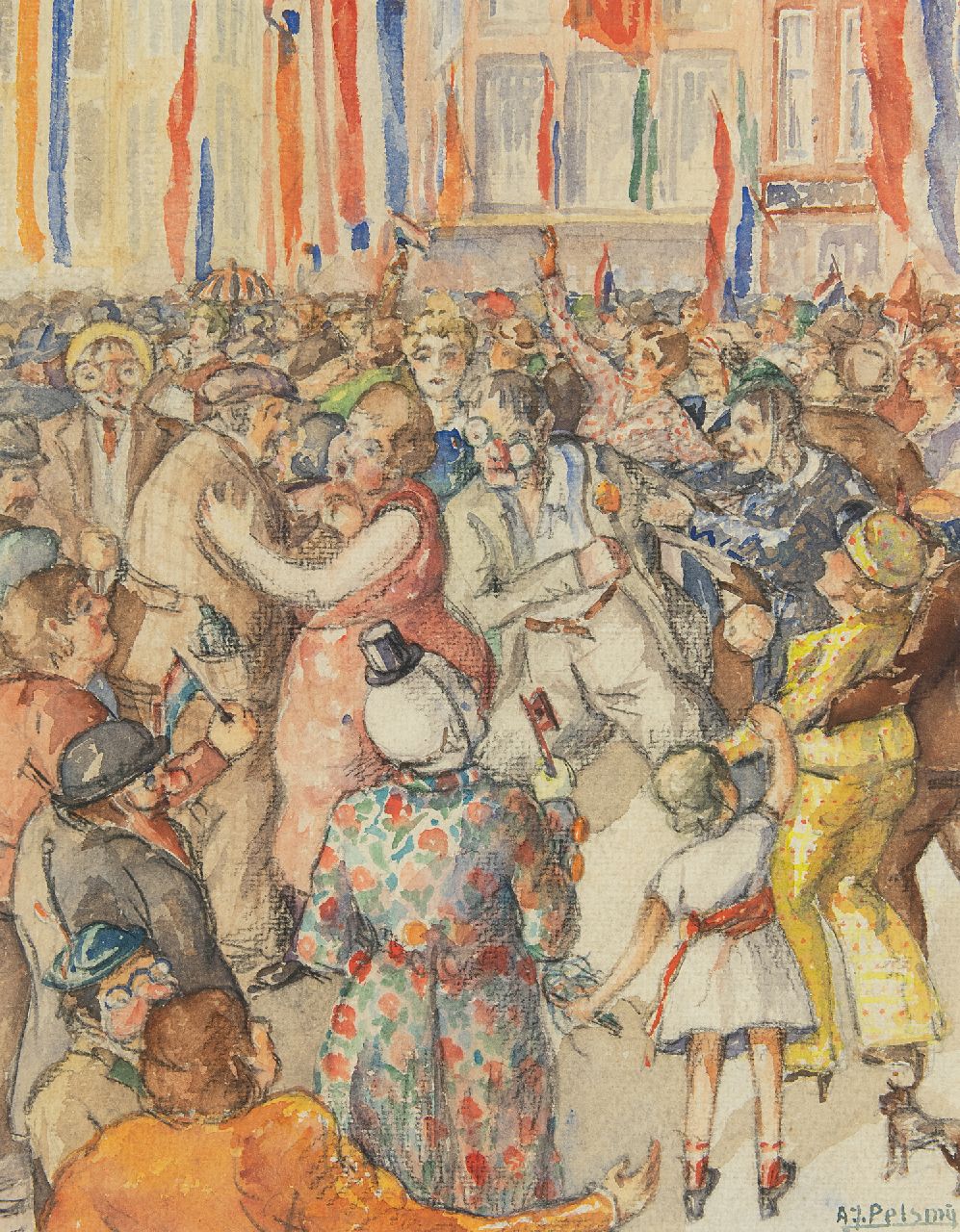 Anne Jan Pelsma kunstwerk • aquarel • tekening • te koop Oranjefeest
