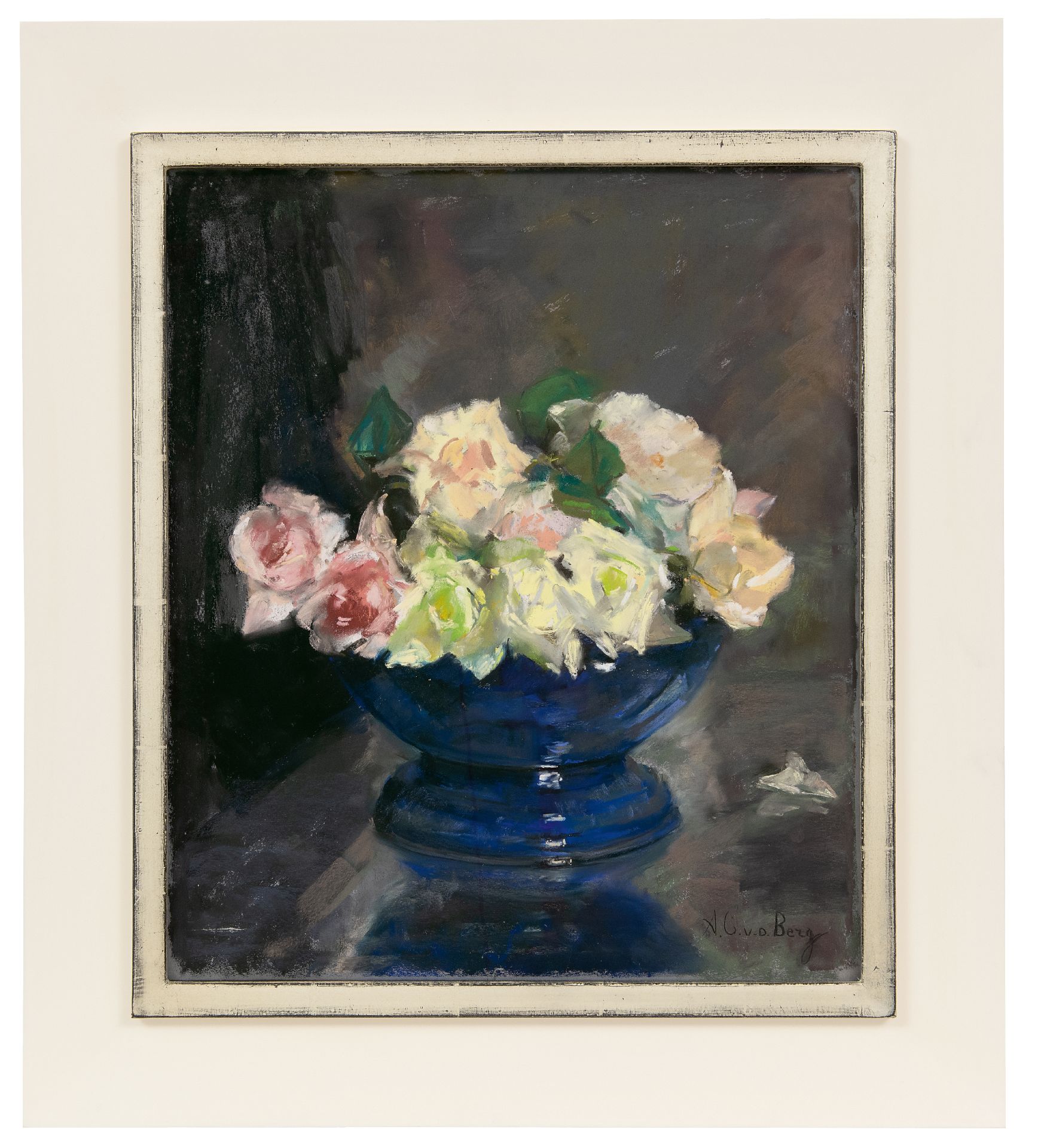 Ans van den Berg kunstwerk • aquarel • tekening • te koop Blauw schaaltje met rozen