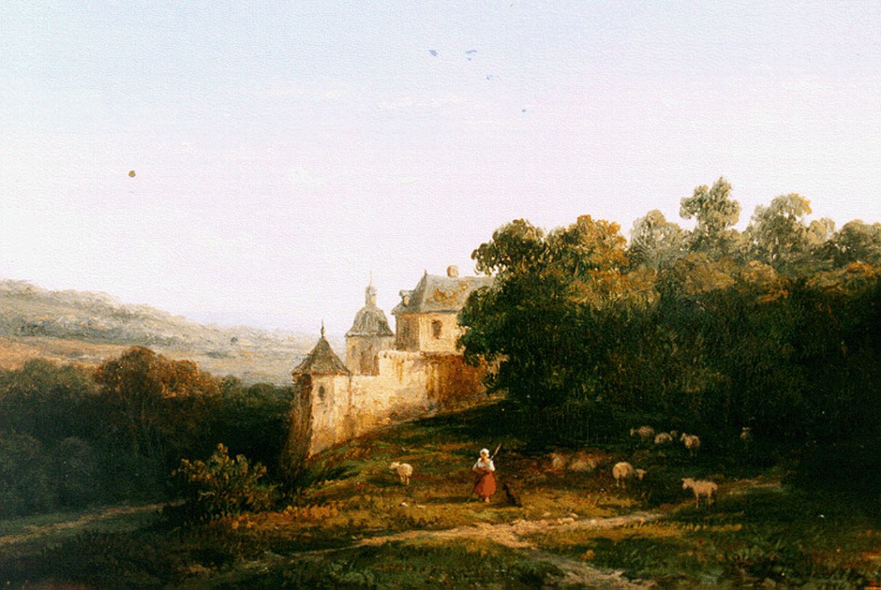 Anthonie Jacobus van Wijngaerdt kunstwerk • schilderij • voorheen te koop Heuvellandschap met kasteel
