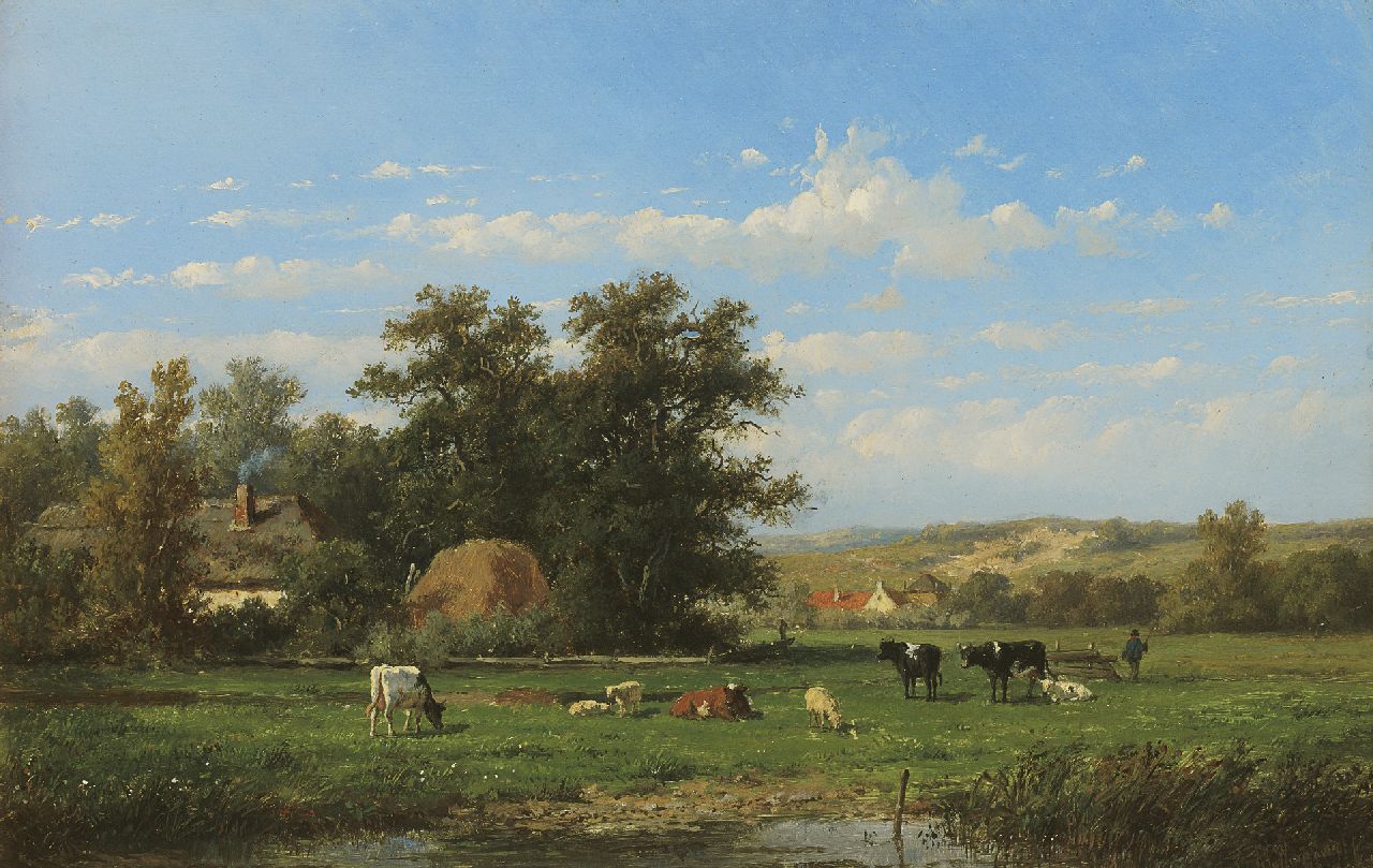 Anthonie Jacobus van Wijngaerdt kunstwerk • schilderij • voorheen te koop Vee in zomers landschap achter de duinen