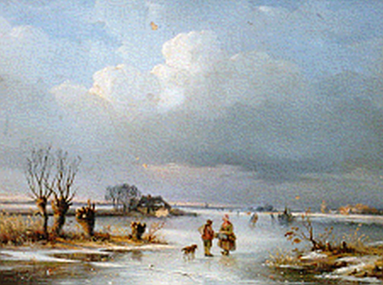 Anthonie Jacobus van Wijngaerdt kunstwerk • schilderij • voorheen te koop Winterlandschap met schaatsers