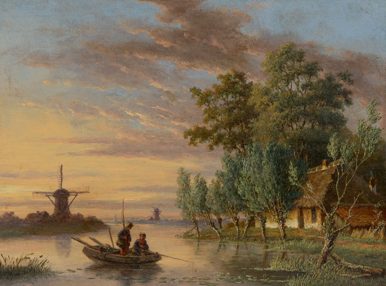 Anthony Andreas de Meijier kunstwerk • aquarel • tekening • voorheen te koop Winters ijsvermaak bij de molen