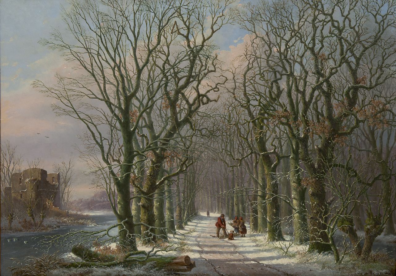 Anthony Andreas de Meijier kunstwerk • schilderij • voorheen te koop Besneeuwd bospad met figuren
