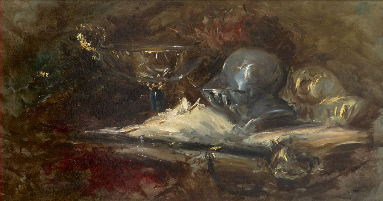 olieverf op paneel 22,3 x 41,8 cm, gesigneerd linksonder