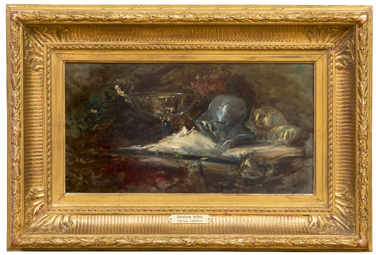 De Franse realist Antoine Vollon werd al tijdens zijn leven bewonderd om zijn stillevens. Geboren in een familie van artistieke handwerkslieden werd hij opgeleid tot graveur en decorateur. In de tussentijd begon hij ook te schilderen. Vastbesloten om daarvan zijn beroep te maken verhuisde hij in 1859 naar Parijs. Daar nam hij les bij Théodule Ribot en vond hij inspiratie in het werk van de Hollandse 17e-eeuwse stillevenschilders. Vollon was zeer succesvol en won met zijn stillevens vele medailles op de Salon te Parijs. Minder bekend is dat hij ook landschappen en marines schilderde.
