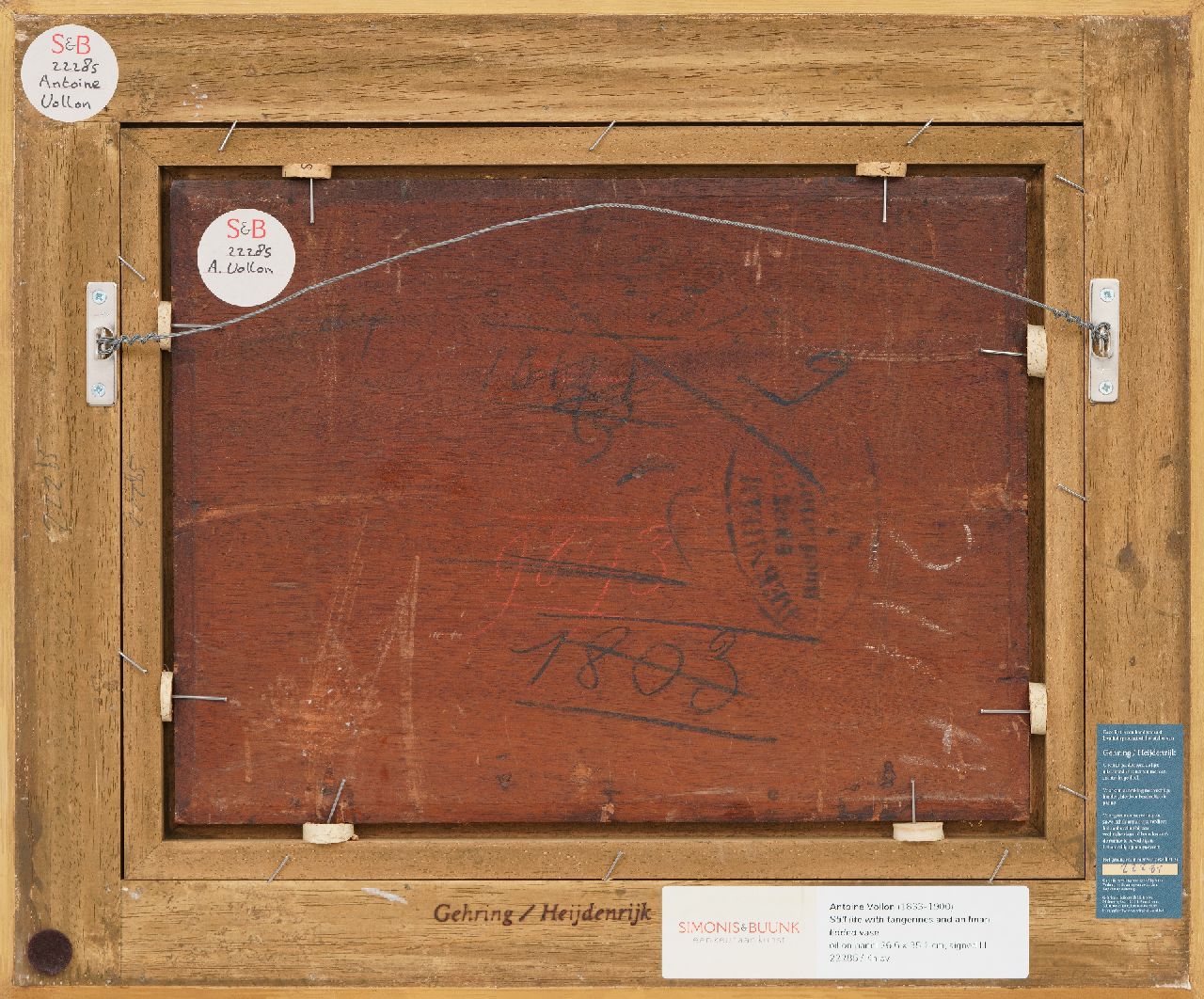De Franse realist Antoine Vollon werd al tijdens zijn leven bewonderd om zijn stillevens. Geboren in een familie van artistieke handwerkslieden werd hij opgeleid tot graveur en decorateur. In de tussentijd begon hij ook te schilderen. Vastbesloten om daarvan zijn beroep te maken verhuisde hij in 1859 naar Parijs. Daar nam hij les bij Théodule Ribot en vond hij inspiratie in het werk van de Hollandse 17e-eeuwse stillevenschilders. Vollon was zeer succesvol en won met zijn stillevens vele medailles op de Salon te Parijs. Minder bekend is dat hij ook landschappen en marines schilderde.