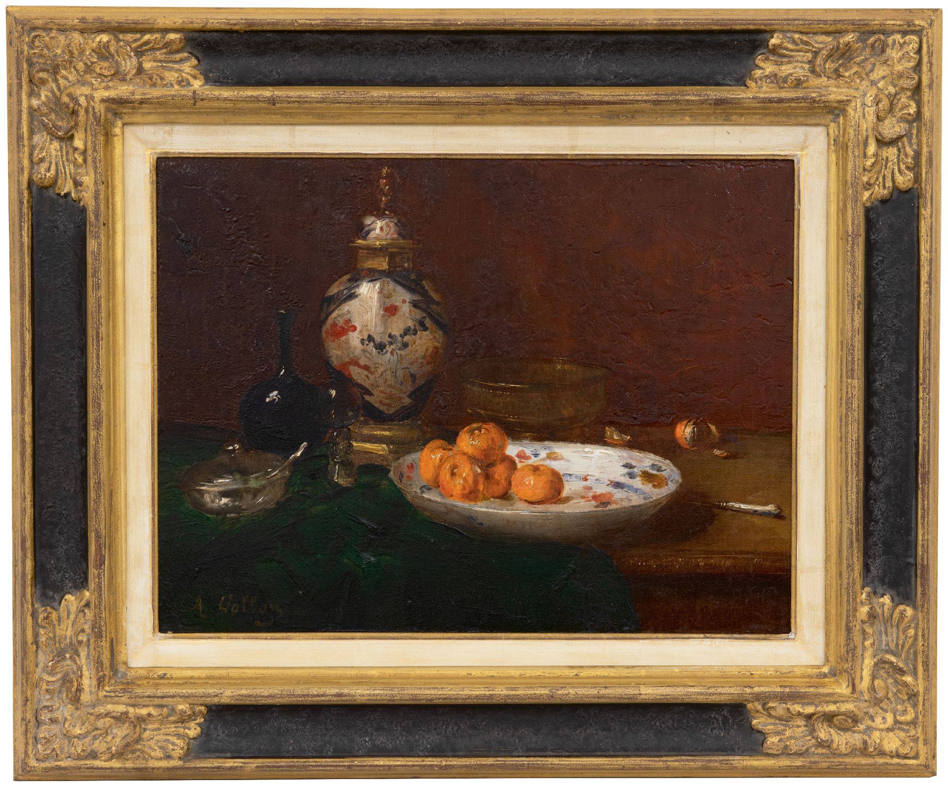 Antoine Vollon kunstwerk • schilderij • voorheen te koop Stilleven met mandarijnen en Imari dekselvaas