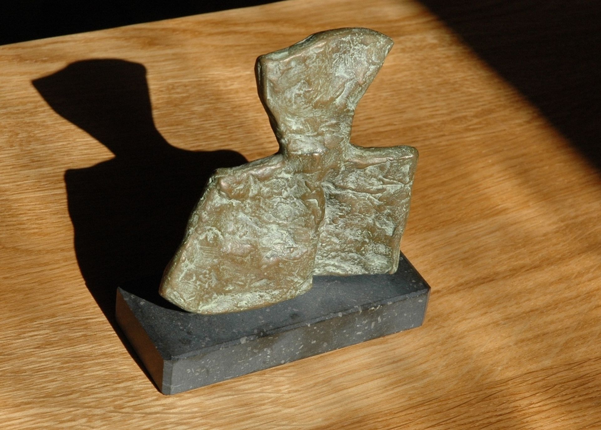 brons 13,9 x 10,6 cm, gesigneerd met initialen op onderrand voorzijde