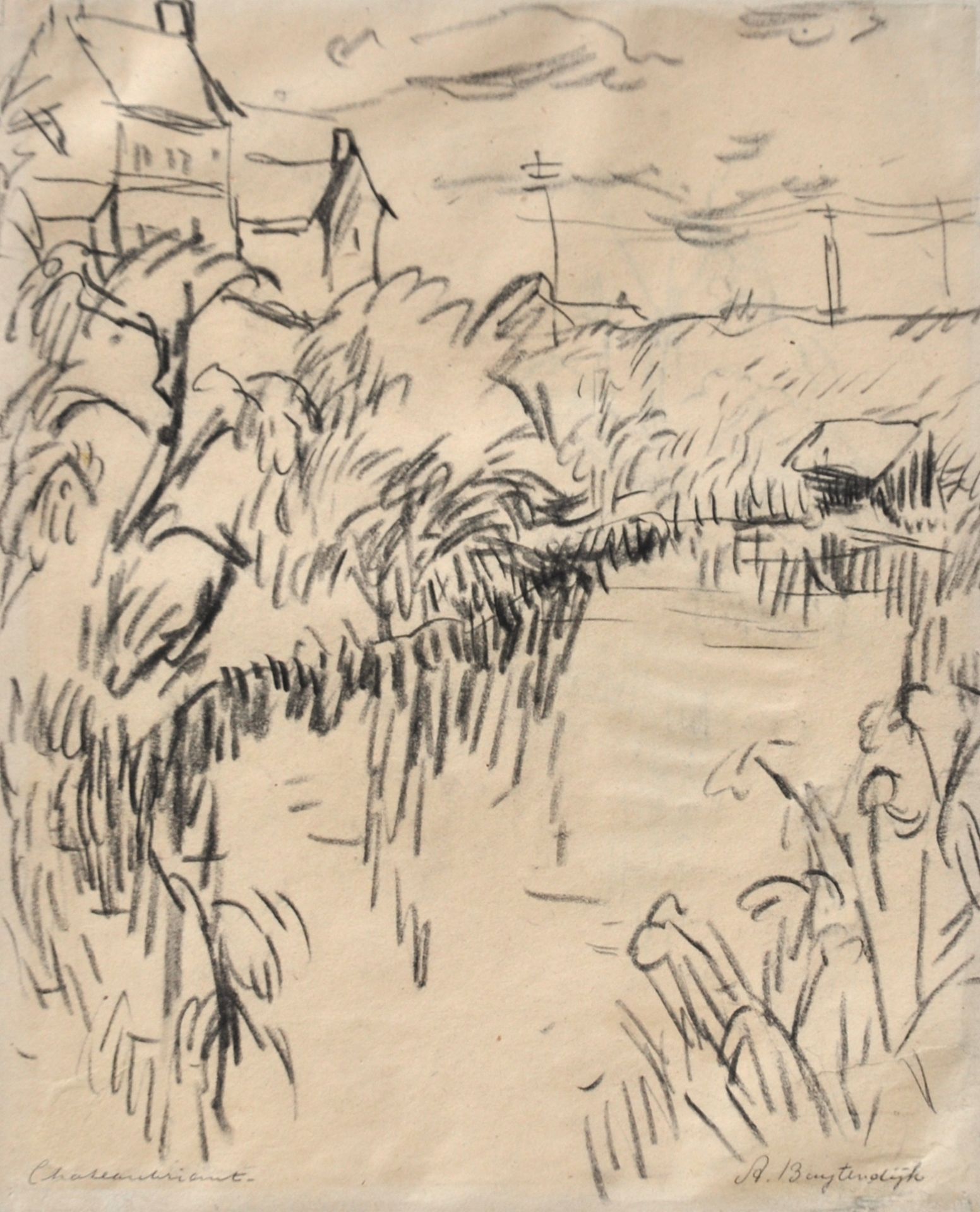 Anton Buytendijk kunstwerk • aquarel • tekening • voorheen te koop Landschap bij Chateaubriant, Frankrijk