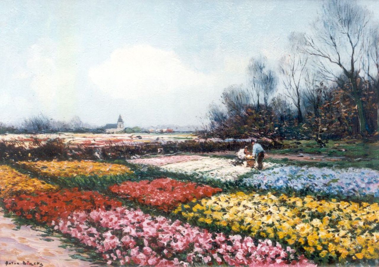 Anton Dirckx kunstwerk • schilderij • voorheen te koop Boeren in een bollenveld