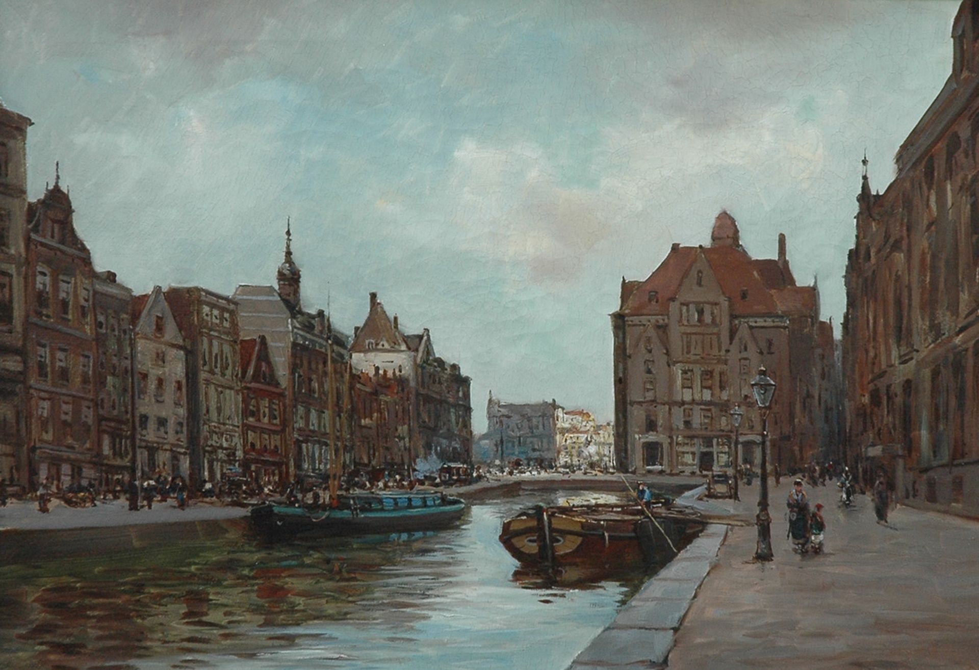 Anton Dirckx kunstwerk • schilderij • voorheen te koop Het Rokin, Amsterdam, met het gebouw van de Sociëteit Industria