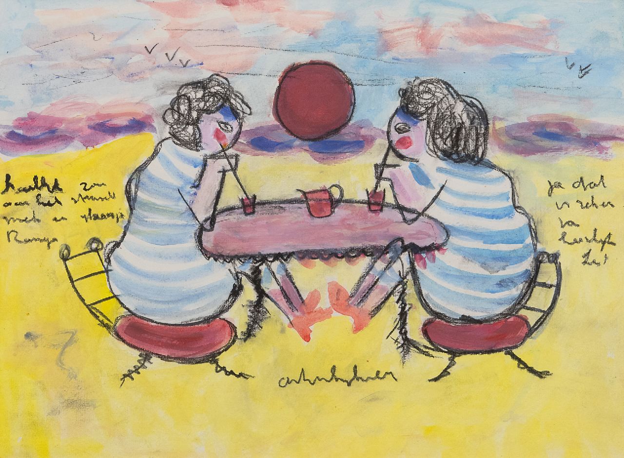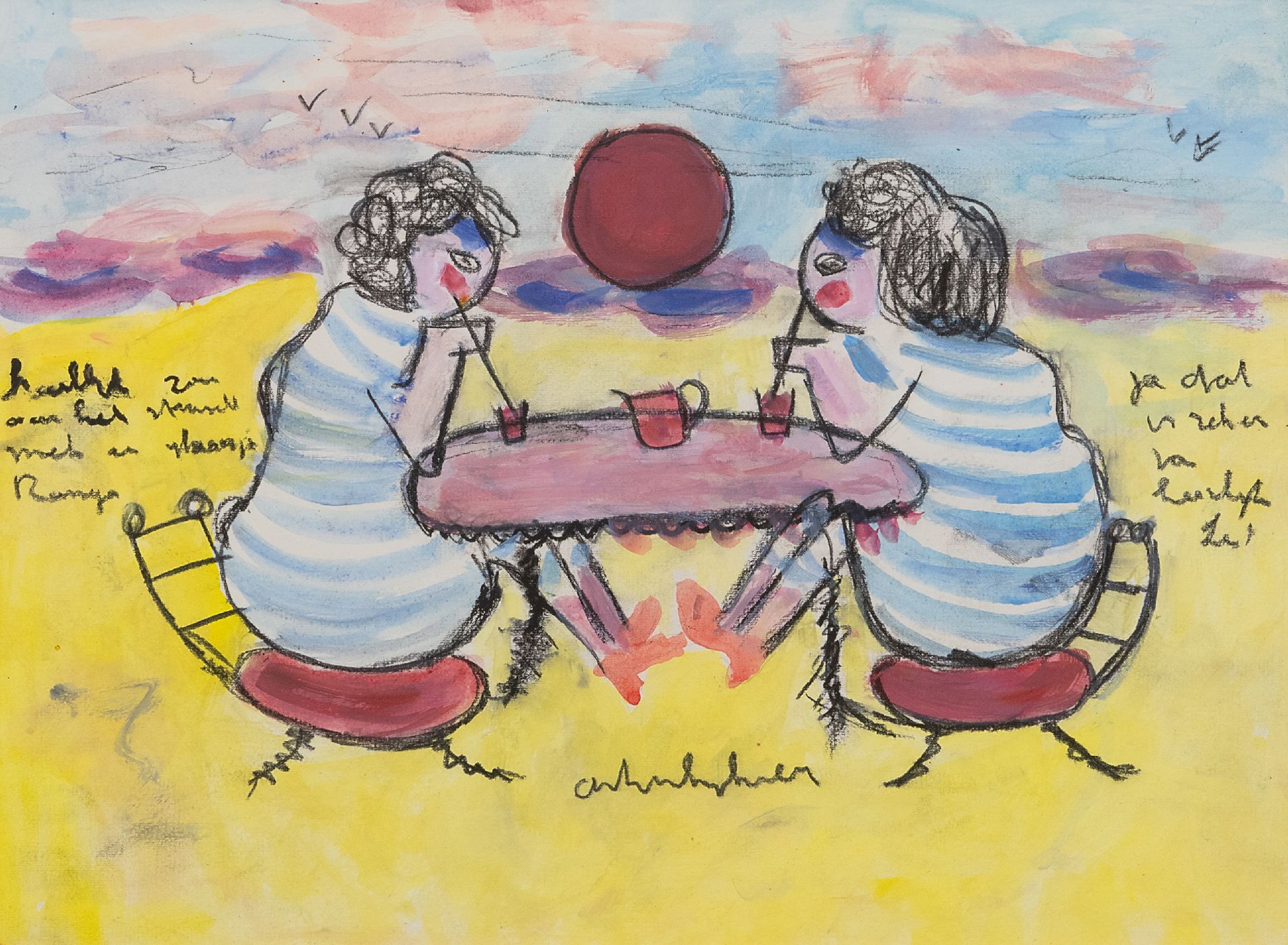 Anton Heyboer kunstwerk • aquarel • tekening • voorheen te koop Heerlijk zo aan het strand