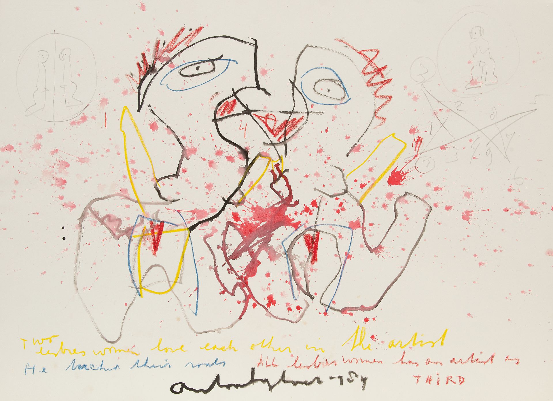 Anton Heyboer kunstwerk • aquarel • tekening • voorheen te koop Two lesbian women love each other in the artist
