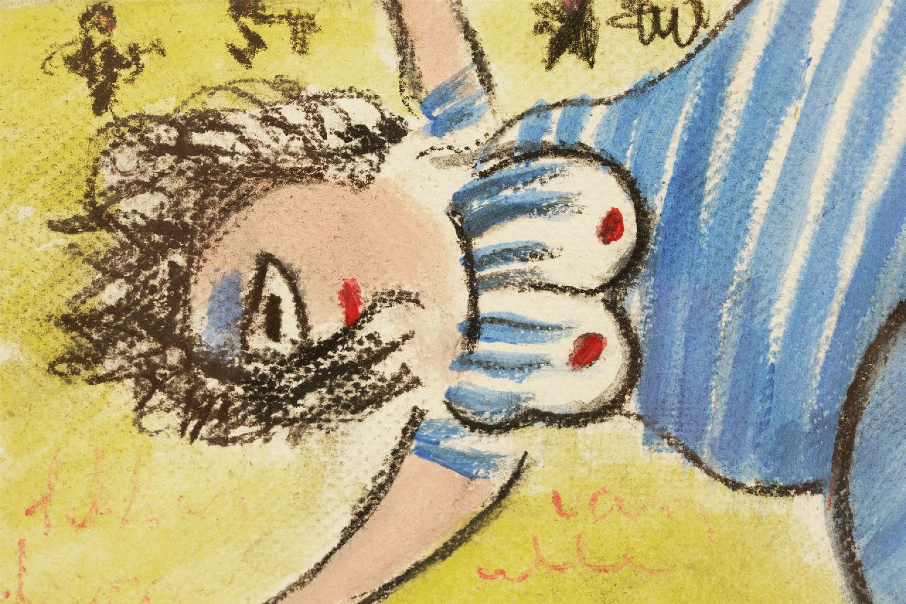 krijt en gouache op papier 28,0 x 28,0 cm, gesigneerd middenonder