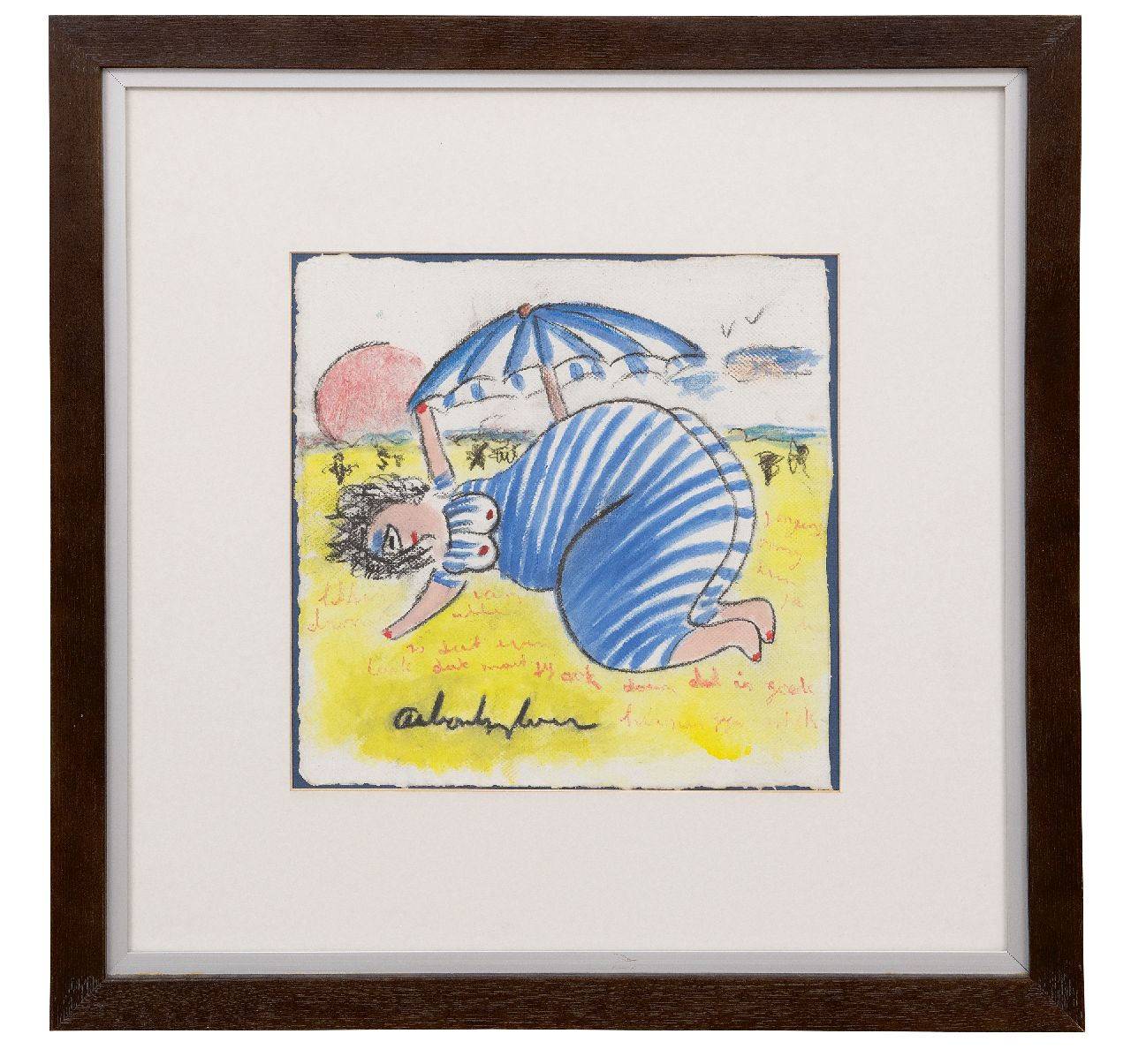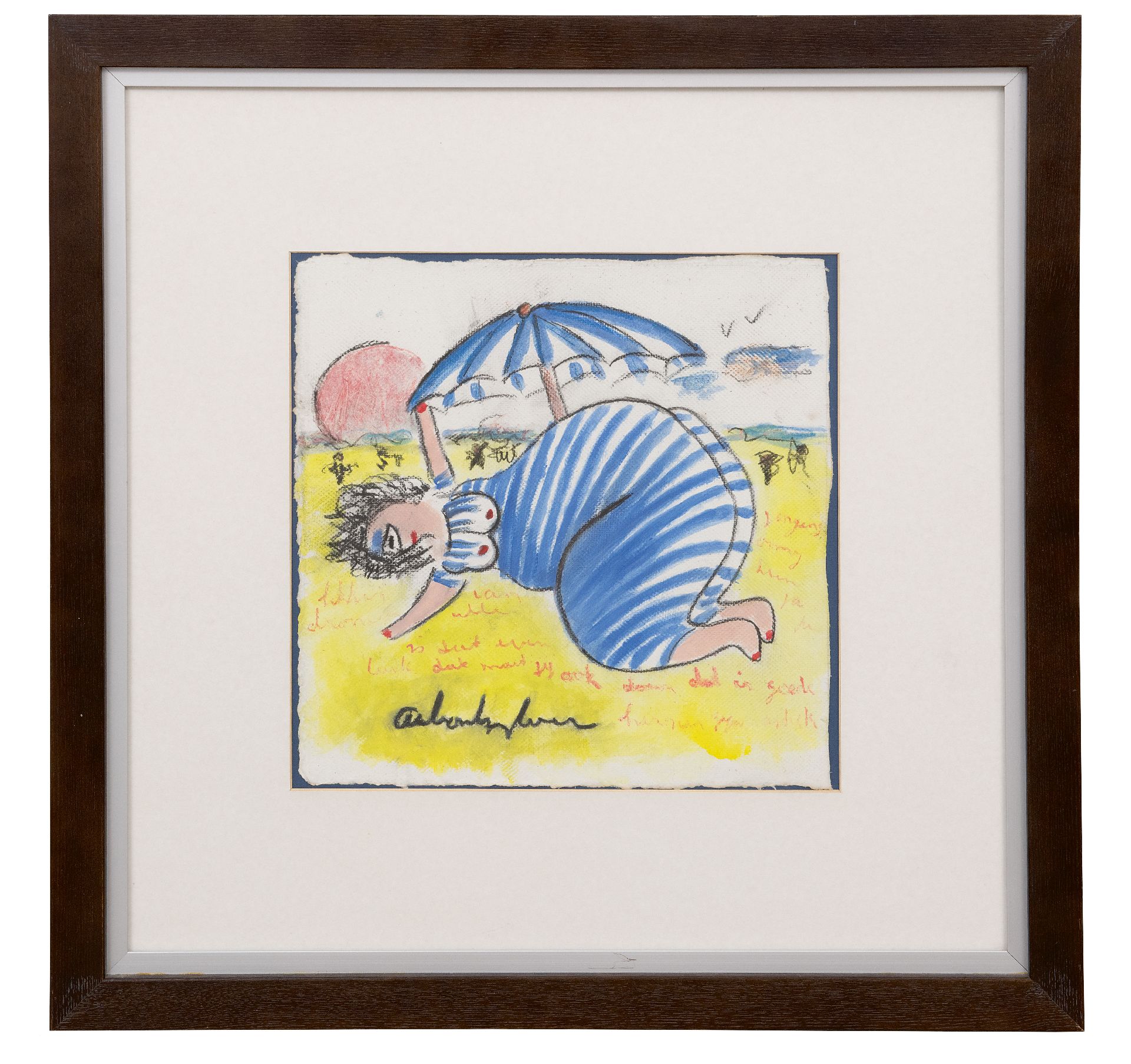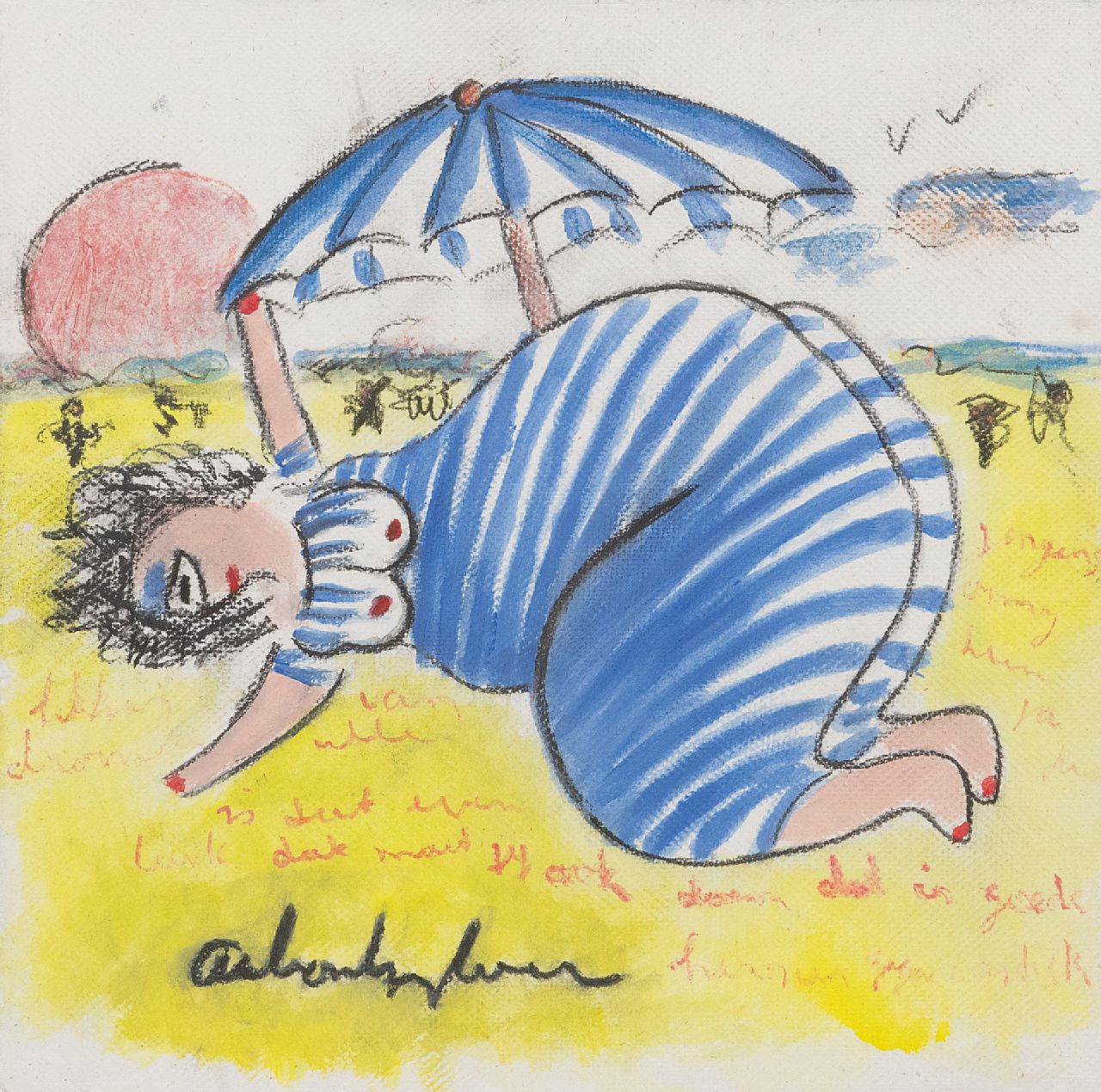 Anton Heyboer kunstwerk • aquarel • tekening • voorheen te koop Zonnebaadster onder een parasol