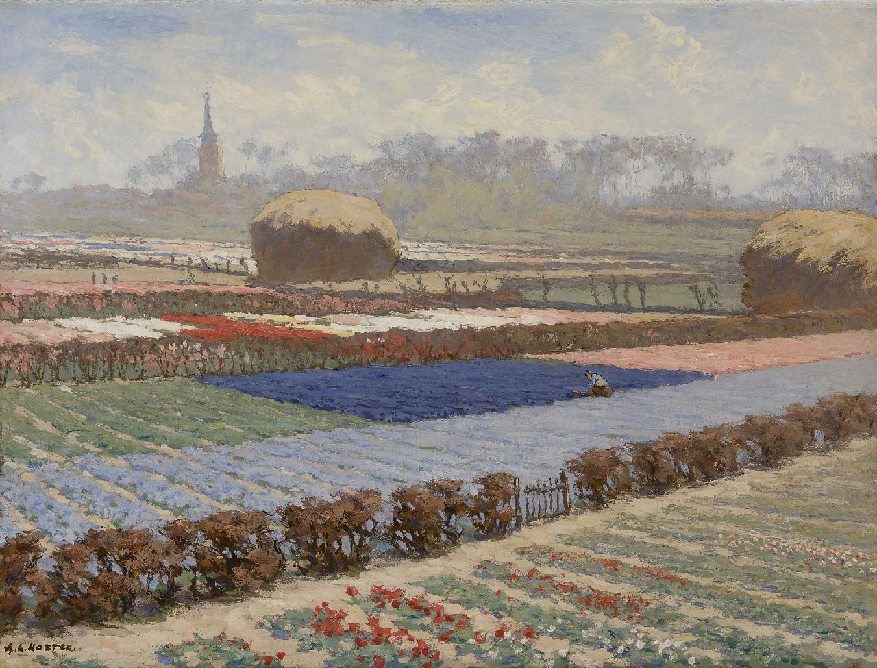 Anton Koster kunstwerk • schilderij • voorheen te koop Hyacinten- en tulpenvelden