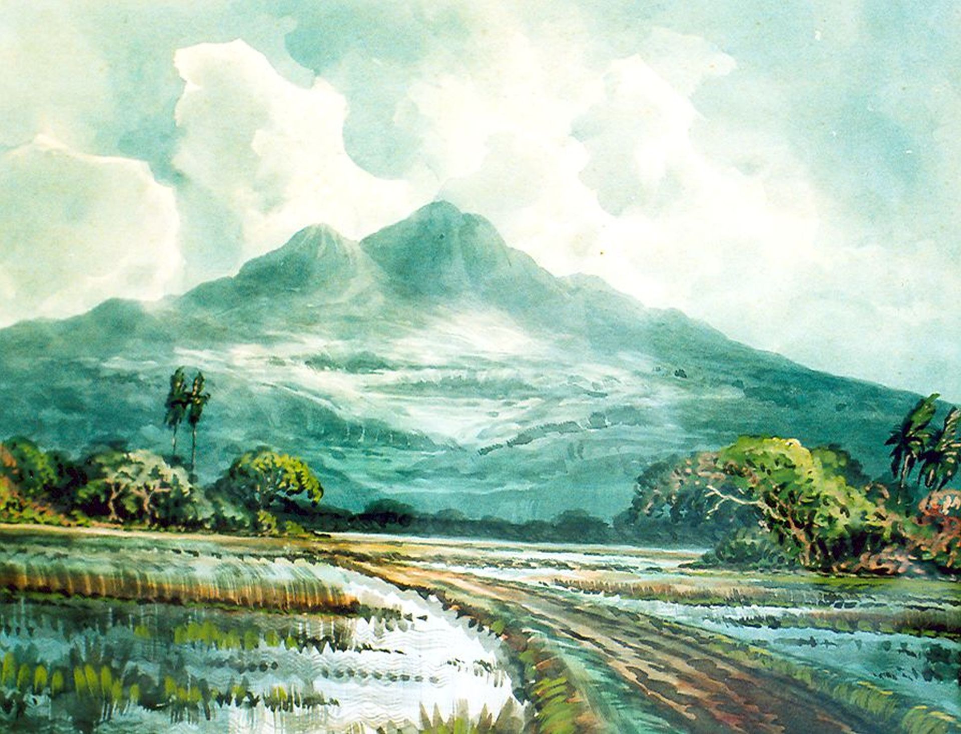 Anton Kustia Widjaja kunstwerk • aquarel • tekening • voorheen te koop Sawa's in Indonesië