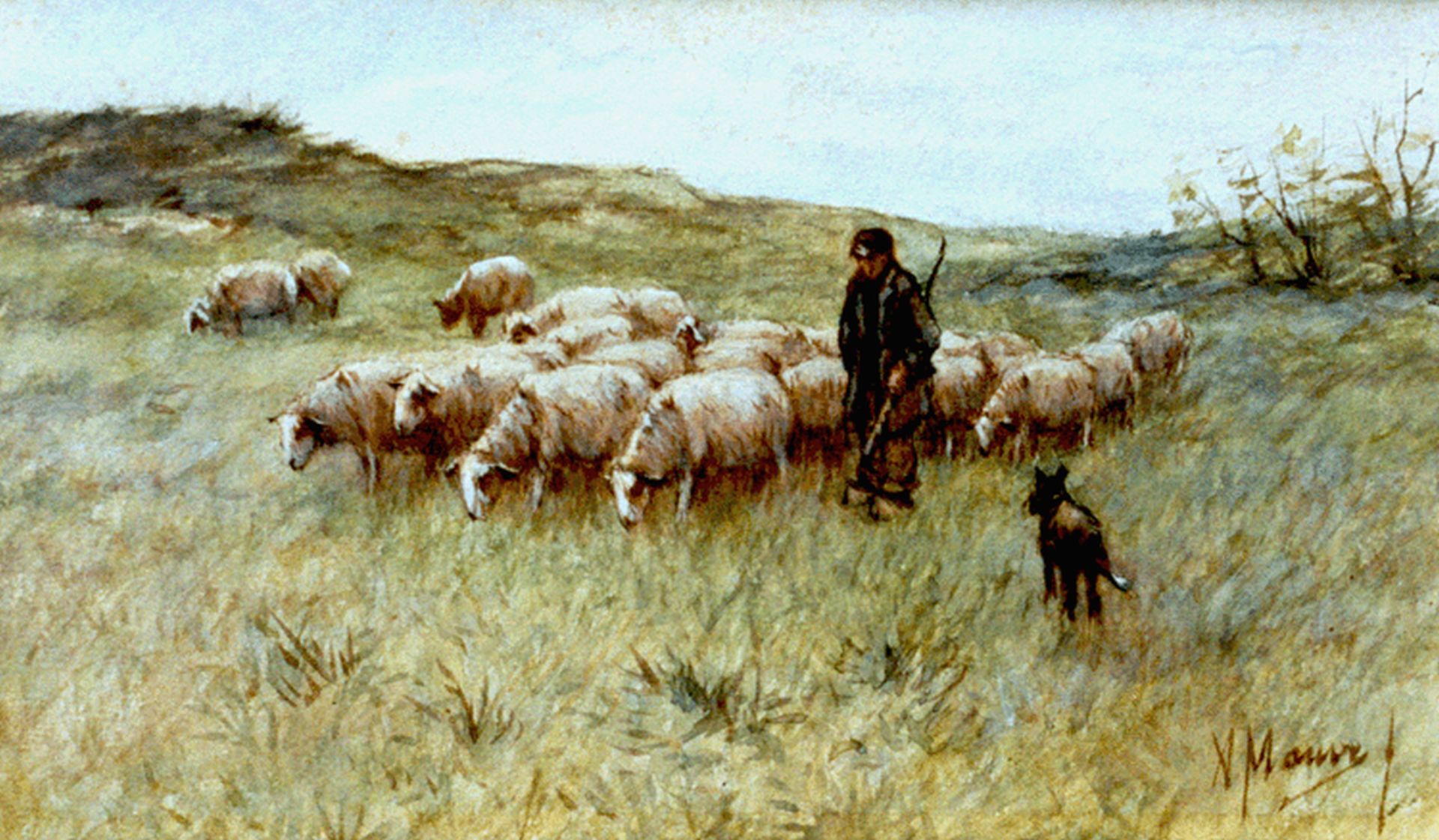 Anton Mauve kunstwerk • aquarel • tekening • voorheen te koop Een schaapherder met zijn kudde