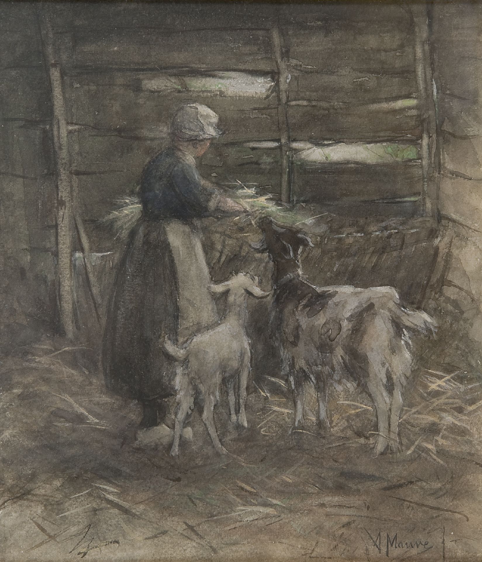 Anton Mauve kunstwerk • aquarel • tekening • voorheen te koop Geiten voeren