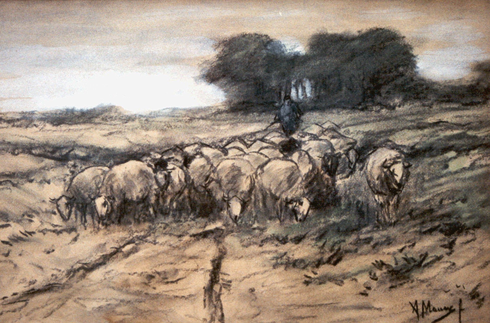 Anton Mauve kunstwerk • aquarel • tekening • voorheen te koop Herder met zijn kudde
