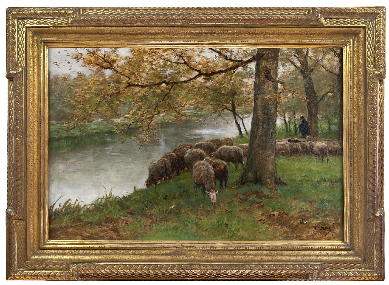 Anton Mauve kunstwerk • schilderij • voorheen te koop Drinkende schapen bij een rivier