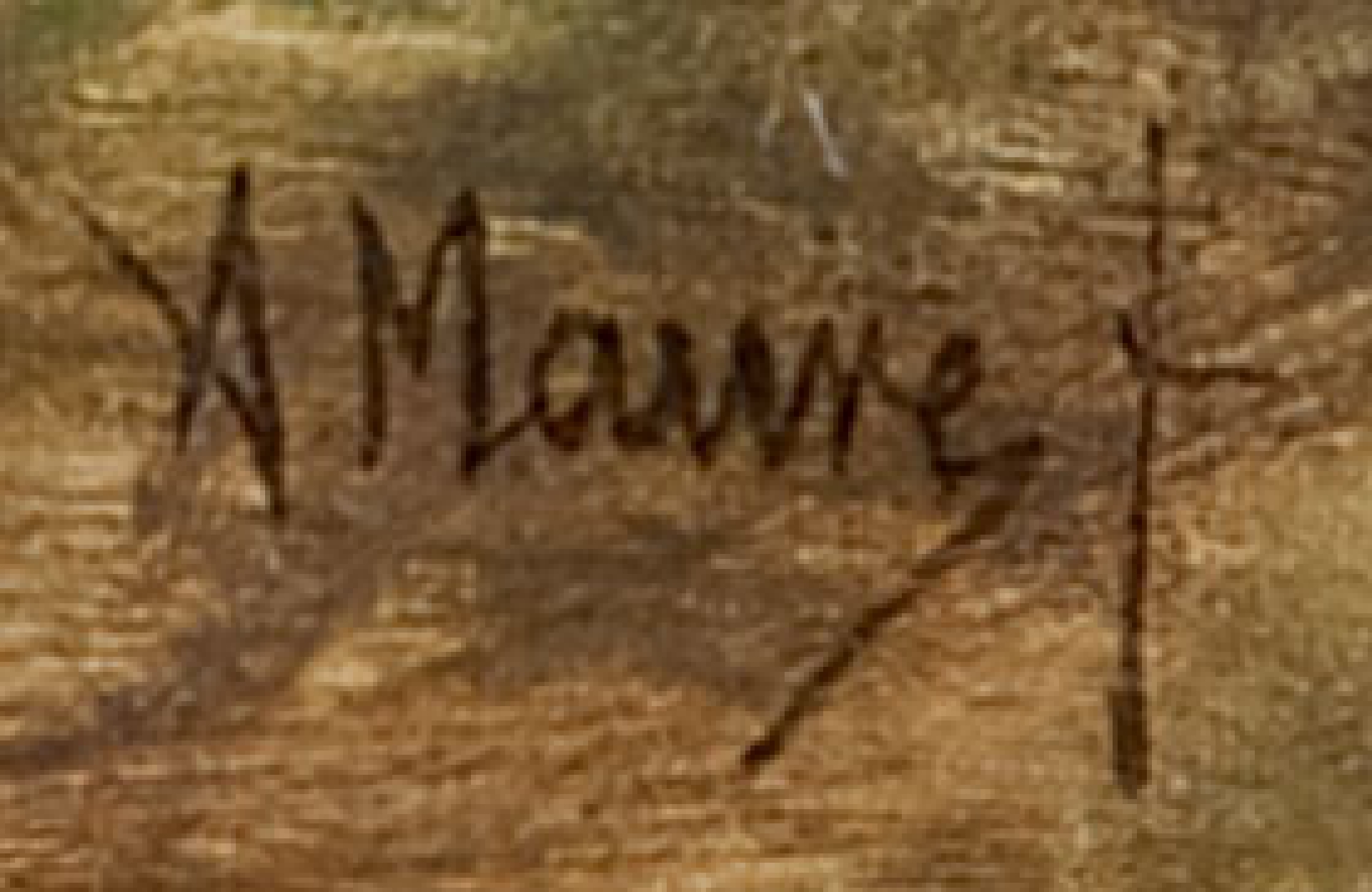 Anton Mauve is een van de bekendste schilders van de Haagse School. Zijn opleiding kreeg hij bij de dierenschilders P.F. van Os en Wouterus Verschuur. Ook werkte hij enige tijd in Oosterbeek met P.J.C. Gabriel. Landschap en dieren combineert hij vaak in zijn schilderijen. Na enige omzwervingen vestigde hij zich in 1871 in Den Haag, later in Laren, waar hij vooral de heide schilderde met wollige schaapskuddes vervloeiend in de zilvergrijze tonen van het landschap. Een van zijn meest geliefde plekjes was een even buiten Laren gelegen stuk woeste grond, later Mauvezand genoemd.
