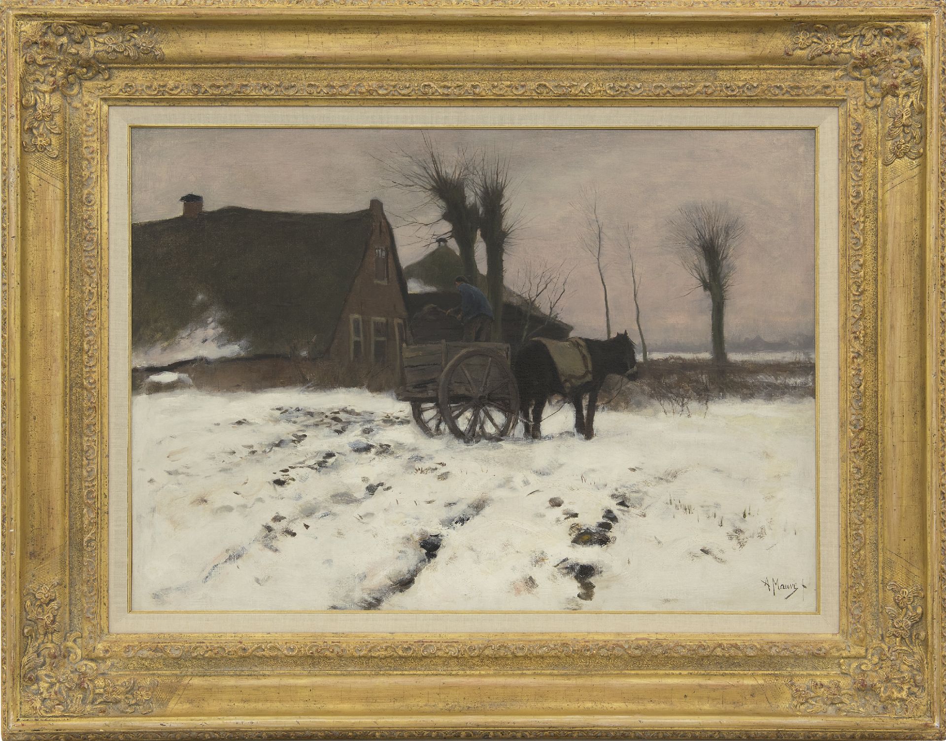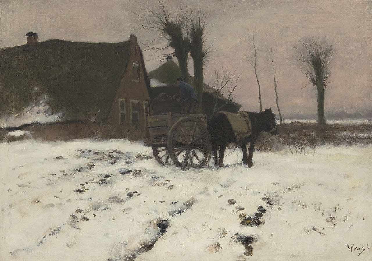 Anton Mauve kunstwerk • schilderij • voorheen te koop Een sneeuwlandschap met paard en wagen